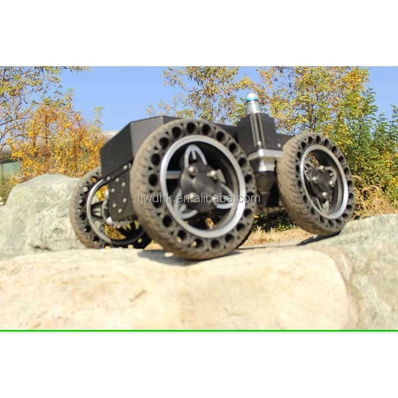 แชสซีรถหุ่นยนต์ 4 ล้อ แพลตฟอร์มหุ่นยนต์สำหรับใช้งานกลางแจ้ง พร้อมระบบกันกระแทก สำหรับหุ่นยนต์อัจฉริยะ