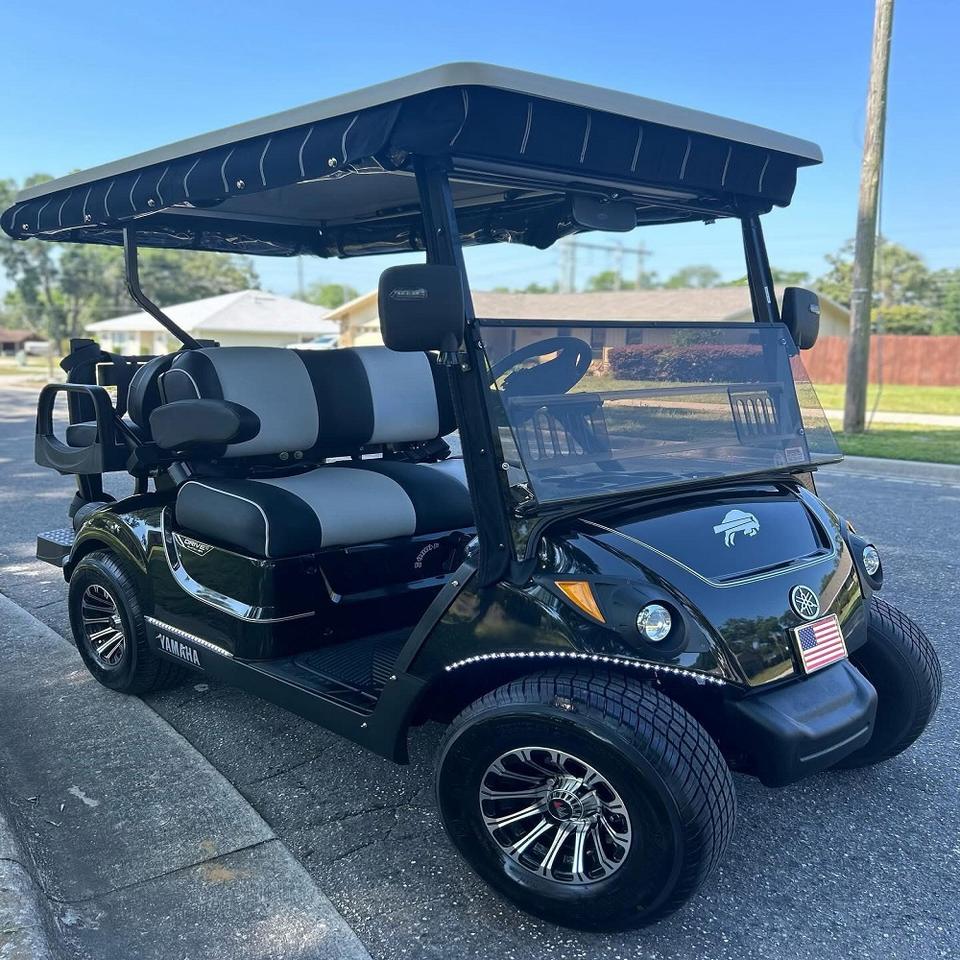 รถกอล์ฟไฟฟ้า4ล้อ4ที่นั่ง48โวลต์รถกอล์ฟรับรองจุดโลหะ5KW รถคลับถนนถูกกฎหมาย50-70กม. ความเร็ว50-70กม./ชม.