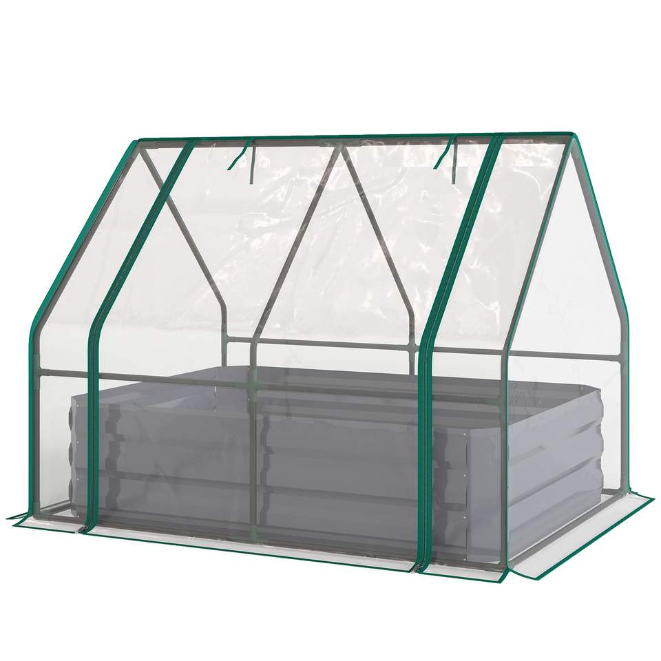 แปลงปลูกผักยกพื้นชุบสังกะสีขนาด 4x3x3 ฟุต พร้อมหลังคาคลุมโปร่งแสงสีเทาเข้ม ประเภทสินค้า โรงเรือนและห้องปลูกพืช