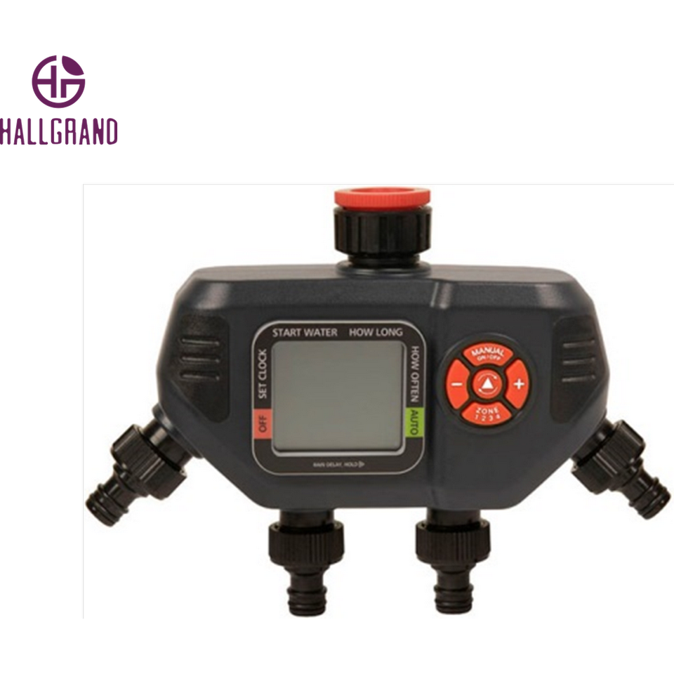 เครื่องจับเวลาน้ำดิจิตอลอัจฉริยะ4โซนสำหรับการชลประทานในสวนและสนามหญ้าเครื่องตั้งเวลาชลประทานอิเล็กทรอนิกส์พร้อมวาล์ว4วาล์วสำหรับใช้งานกลางแจ้งในบ้าน