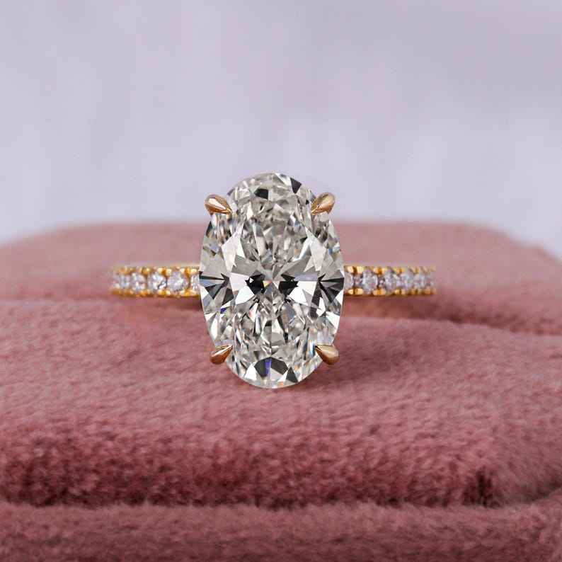 4กะรัต E สี VVS2ความชัดเจน IGI ได้รับการรับรองตัดวงรีสร้างแหวนหมั้นเพชรด้วยเพชรกลมด้านข้างทองคำขาว14K