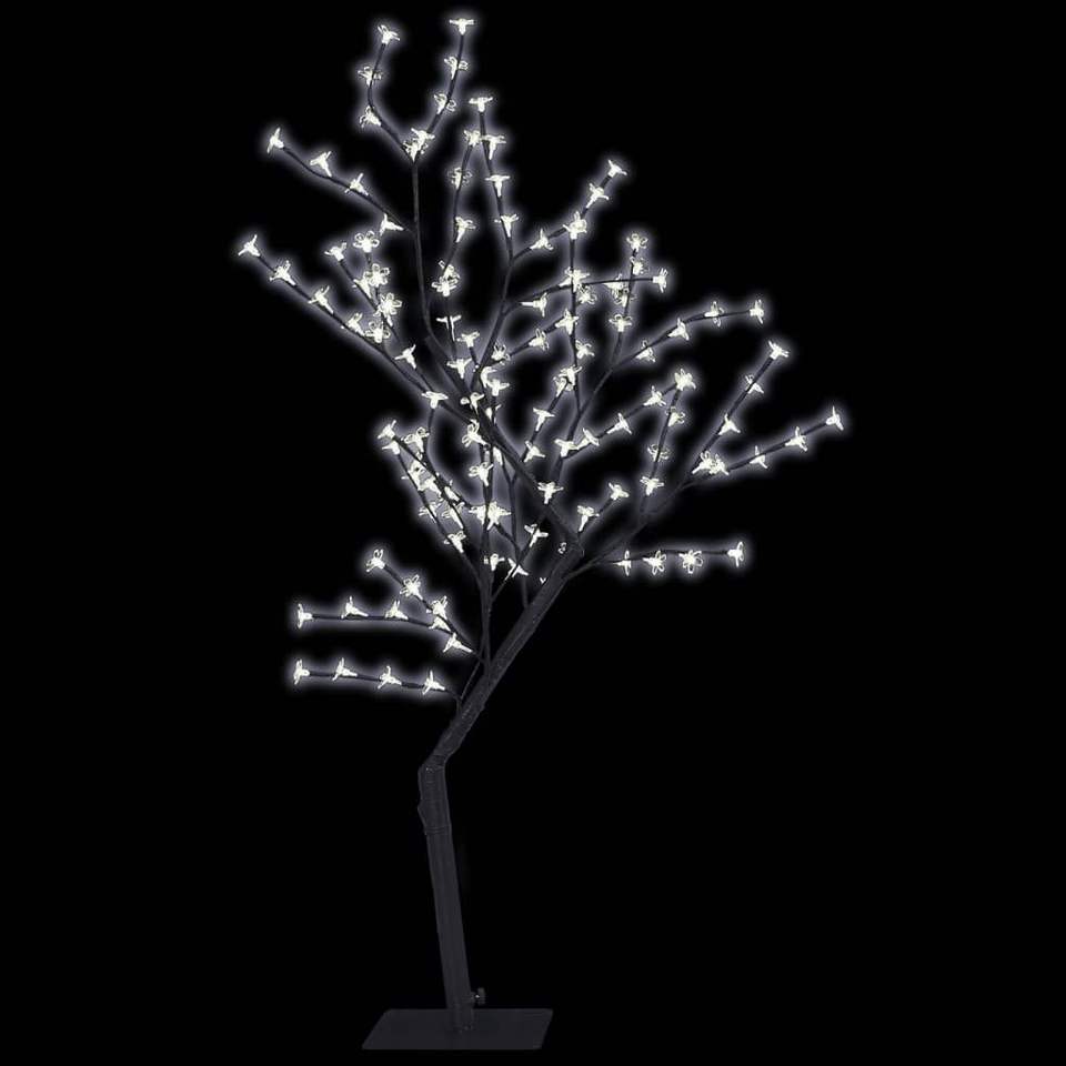 ต้นคริสต์มาสสูง 4 ฟุต พร้อมไฟคริสต์มาสสีขาวเย็นทำจากพลาสติกและโลหะสีดำ