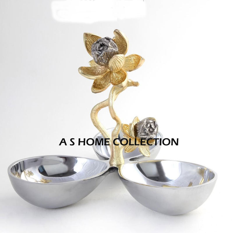 ชาม4อิน1ดีไซน์ดีที่สุดและราคาดีชุดชามอลูมิเนียมผลไม้กิ่งไม้ชุบเงินสำหรับตกแต่งบ้าน