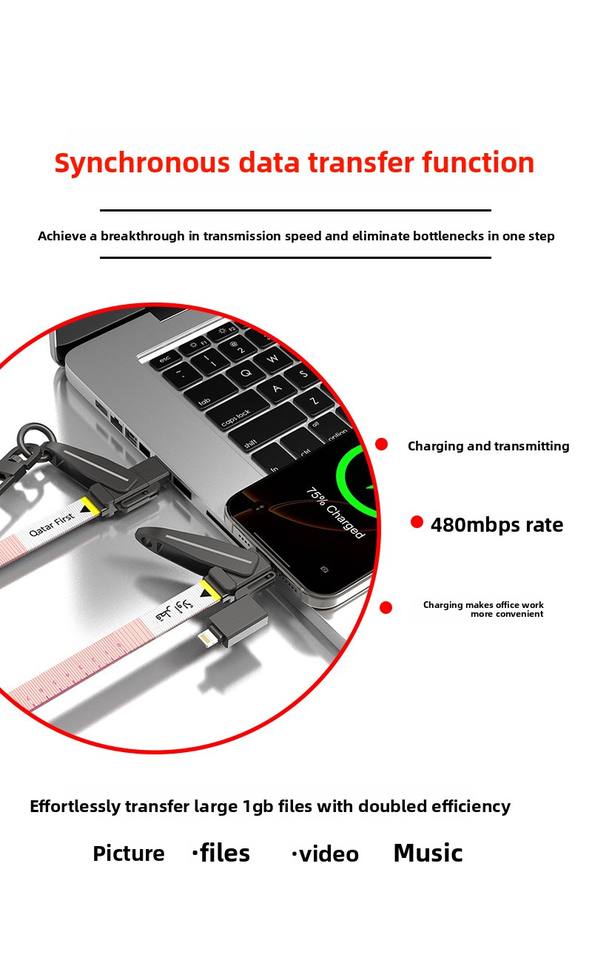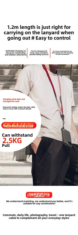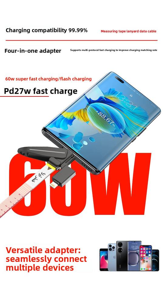 สายชาร์จโทรศัพท์มือถือ 4-in-1 ดีไซน์แบบสายคล้องคอ พร้อมสายชาร์จหลายหัว 60W 1.2 เมตร ชนิด Type C USB ชาร์จเร็ว รองรับ PD ใช้ได้กับโทรศัพท์ทุกรุ่น