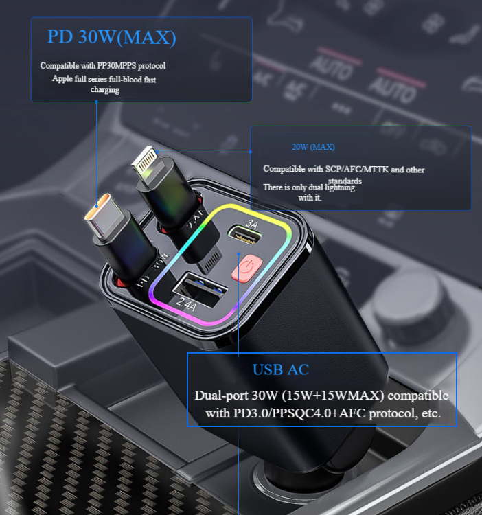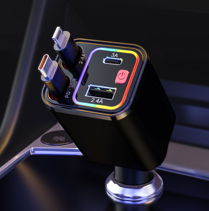 การรวมกัน:ที่ชาร์จในรถยนต์แบบพับเก็บได้ 4 in 1