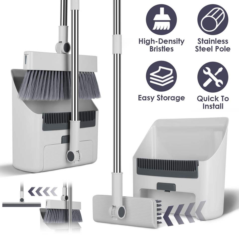 ชุดไม้กวาดพร้อมที่โกยผงและที่ปาดน้ำ 4 in 1 ทำจากสแตนเลส พร้อมด้ามจับ ใช้งานได้ทั้งภายในและภายนอกอาคาร