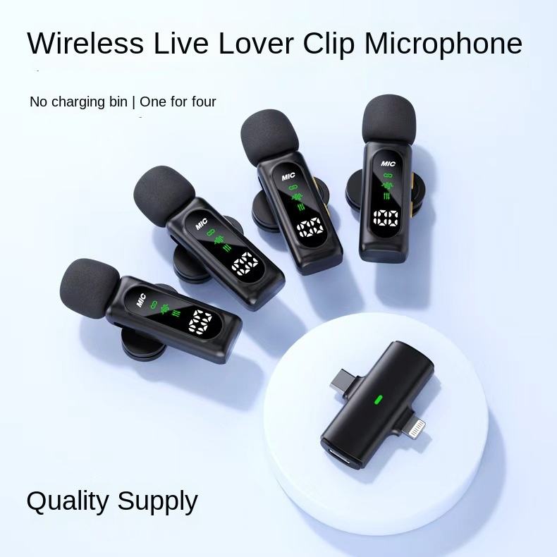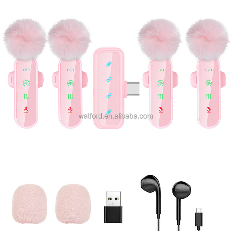 ไมโครโฟนไร้สายแบบหนีบปกเสื้อ 4 in 1 น้ำหนักเบา ตัดเสียงรบกวนด้วยแม่เหล็ก 2.4G Type C แบบคอห่าน รับเสียงรอบทิศทาง แบตเตอรี่ในตัว ใช้ได้กับ iPhone iPad