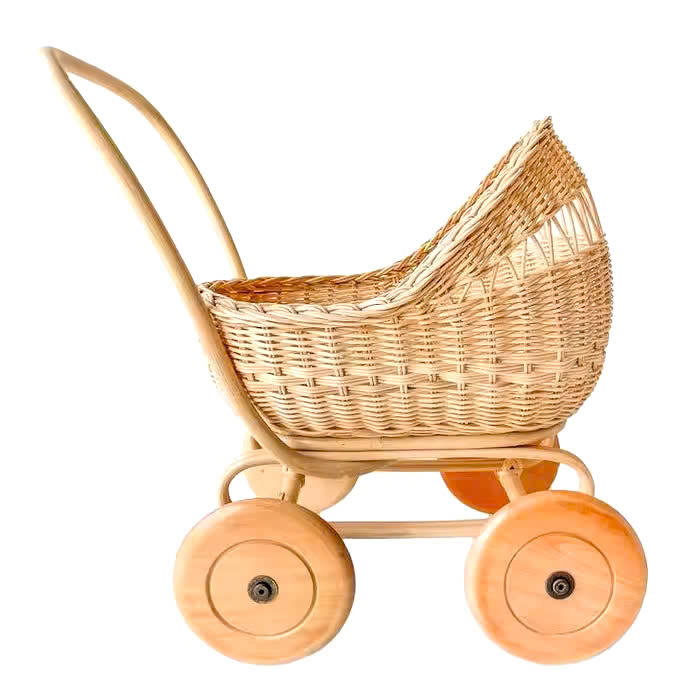 รถเข็นตุ๊กตาหวายไม้4ขาเฟอร์นิเจอร์หวายสำหรับเด็กของเล่นเด็กเปลตุ๊กตาในราคาที่ดีที่สุดในเวียดนาม