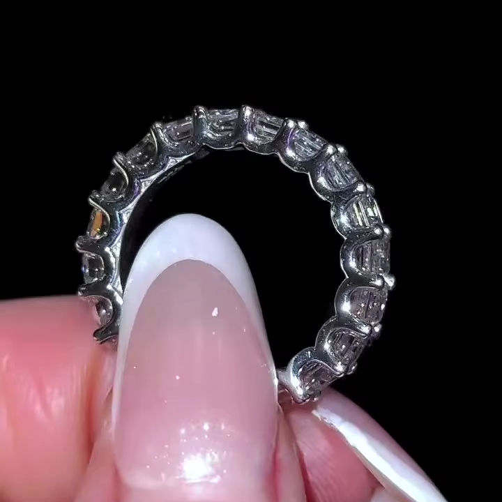 4 mm emerald cut cz eternity band classic channel style wedding ring white gold plated fine jewelry
