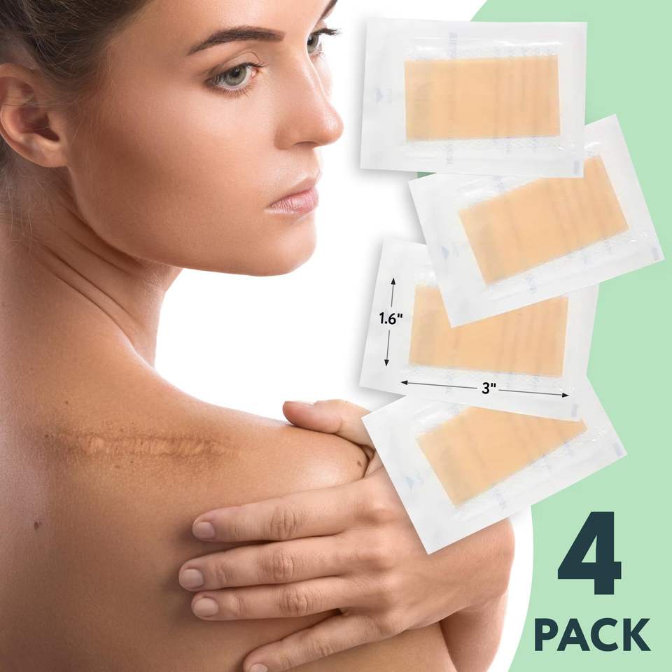 แผ่นแผลเป็นซิลิโคนแบบใช้ซ้ำได้4แพ็ค1.6X3นิ้วเทปซิลิโคนเนื้อนิ่มสำหรับลบรอยแผลเป็นไหม้ส่วน C
