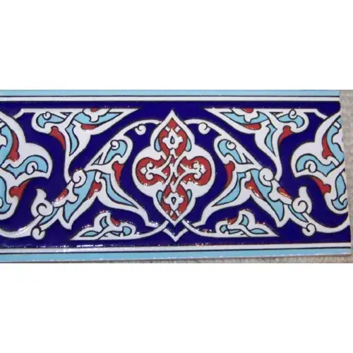 4 \ "X8" ขอบกระเบื้องเซรามิกลายดอกไม้ Iznik ยกแสงสีแดงและสีน้ำเงินเข้ม-อุปกรณ์เสริมกระเบื้อง