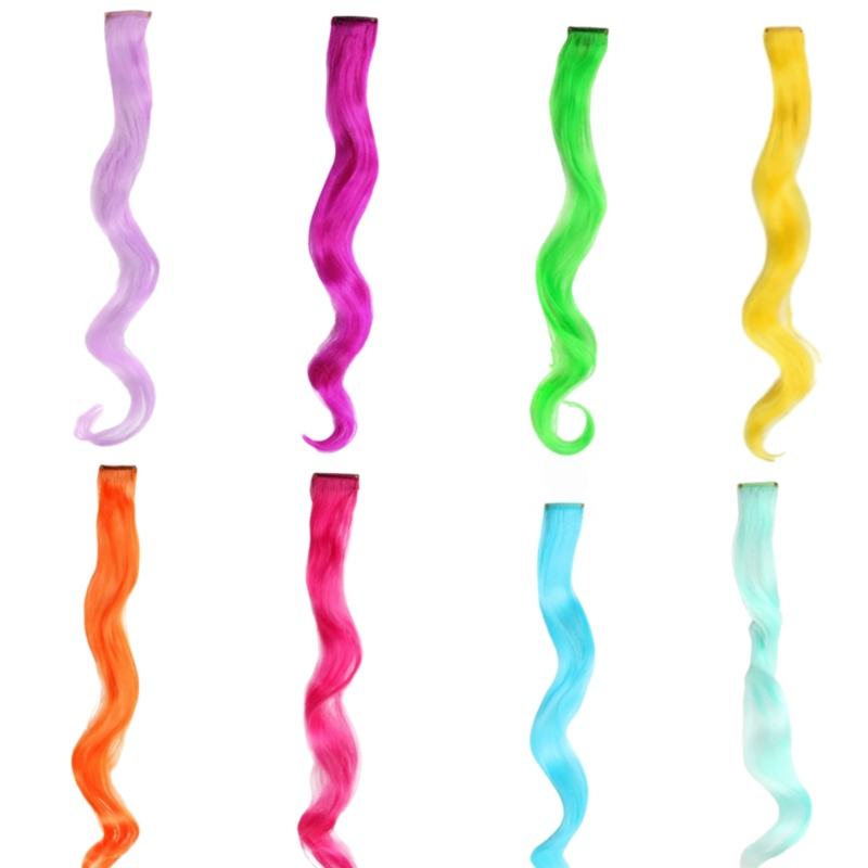วิกผมลอนธรรมชาติ40สีสำหรับต่อผมวิกผมสังเคราะห์สีรุ้งแบบทำมือไฮไลท์วิกสำหรับเด็กผู้หญิงเด็ก