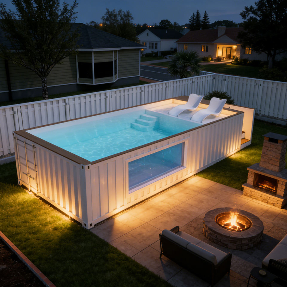 สระว่ายน้ำสำเร็จรูปขนาดครอบครัว 40 ฟุต พร้อมฝาครอบกระจก สำหรับใช้ในบ้าน สวนหลังบ้าน สระว่ายน้ำกลางแจ้ง ทำจากไฟเบอร์กลาส ทนทาน