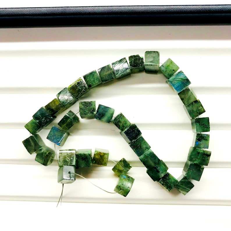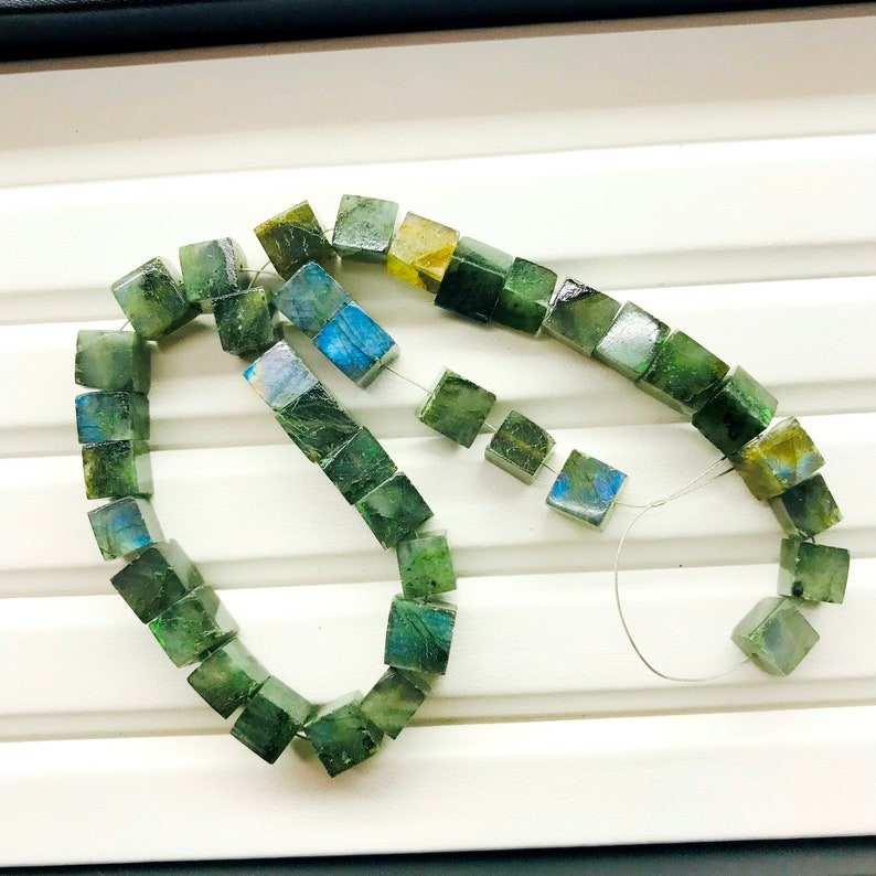 ลูกปัดอัญมณีลาบราดอไรต์ขนาด40เหลี่ยมสำหรับทำเครื่องประดับกล่องเจาะเต็มตัวลูกปัดหลวม6-14มม.