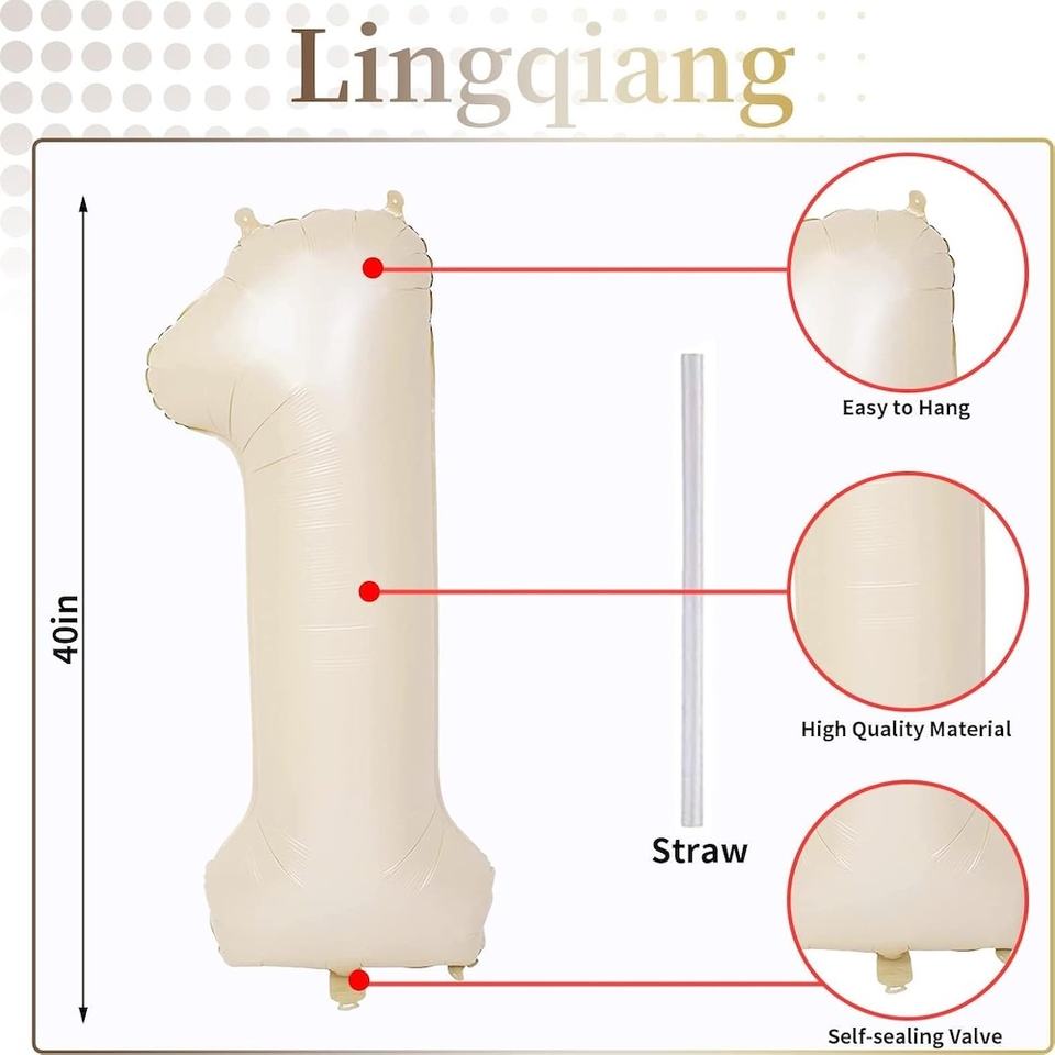 ลูกโป่งตัวเลขสีเบจขนาด 40 นิ้ว เบอร์ 1 สำหรับตกแต่งวันเกิดครบรอบ 1 ปี ลูกโป่งฟอยล์อะลูมิเนียมขนาดใหญ่แบบพองลมเองได้ ตัวเลข 0-9 สำหรับเด็กชายและเด็กหญิง