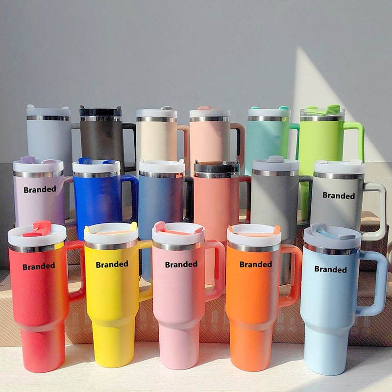 แก้วน้ำสแตนเลสแบบมีหูจับ ขนาด 40 ออนซ์ พร้อมหลอดดูด สกรีนโลโก้ได้ เหมาะสำหรับการเดินทาง ท่องเที่ยว แคมป์ปิ้ง