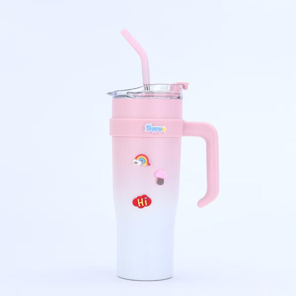 แก้วน้ำสแตนเลสขนาด 40 ออนซ์ พร้อมหูจับและหลอดดูด - แก้วน้ำเก็บความร้อนสุญญากาศสองชั้น