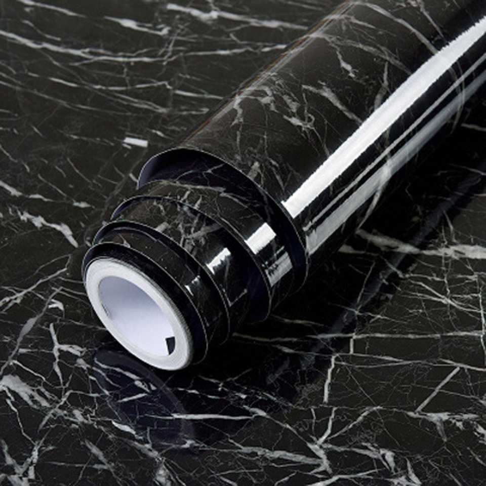 สติกเกอร์ไวนิลติดผนังลายหินอ่อนสีดำขนาด40ซม. X 3ม. สำหรับตกแต่งบ้าน