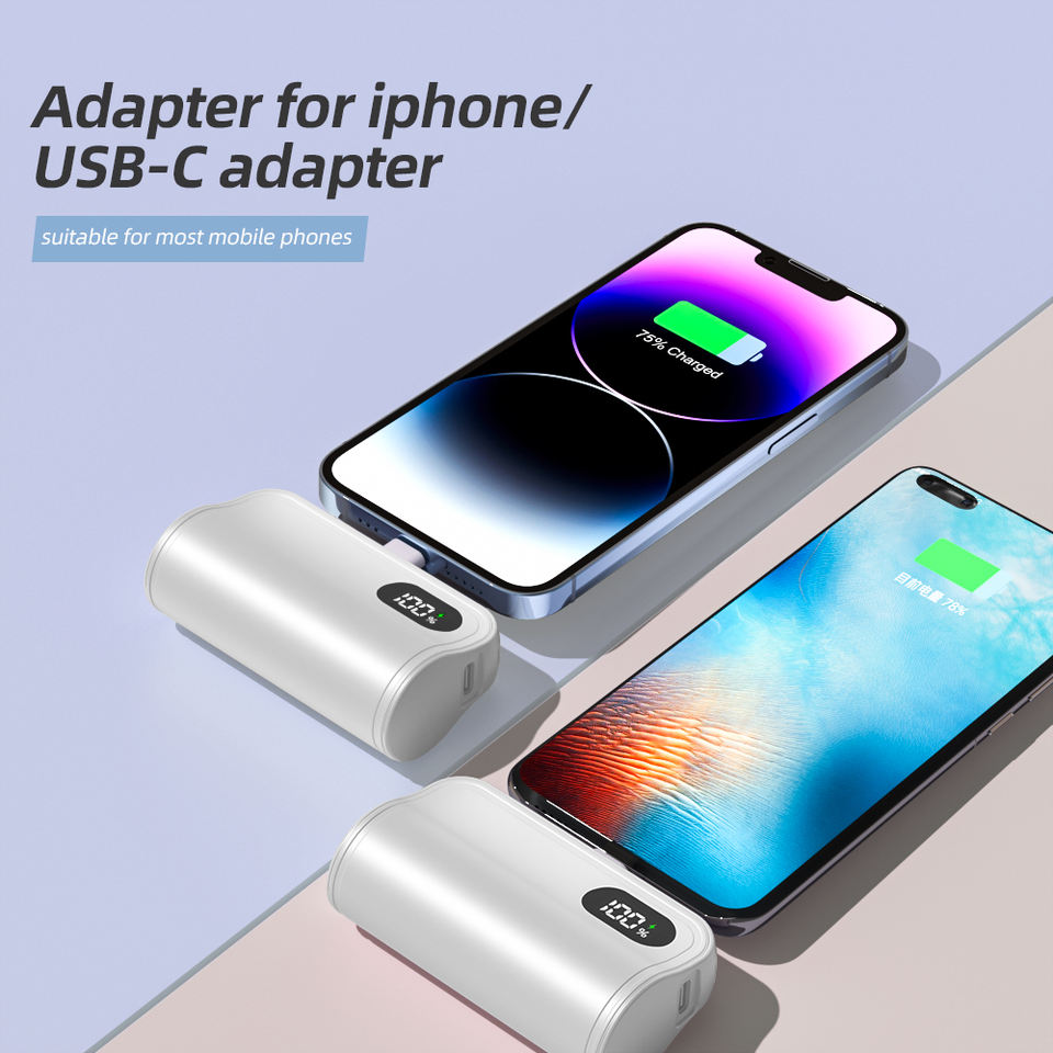 พาวเวอร์แบงค์แบบแคปซูลขนาดเล็ก 4000/5000 มิลลิแอมป์ พร้อมที่วางโทรศัพท์ จอแสดงผลดิจิตอล 3 in 1 สายชาร์จในตัวแบบหัวคู่
