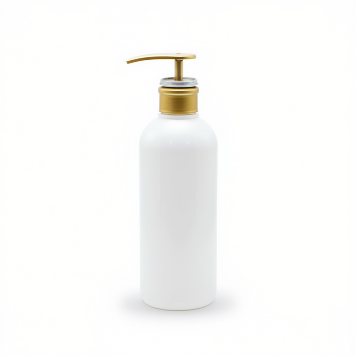ขวดพลาสติก PET สีขาว ขนาด 400 มล. พร้อมฝาปิดแบบกดสีทอง สำหรับบรรจุภัณฑ์แชมพู โลชั่น น้ำยาทำความสะอาดผิวหน้า และเครื่องสำอาง