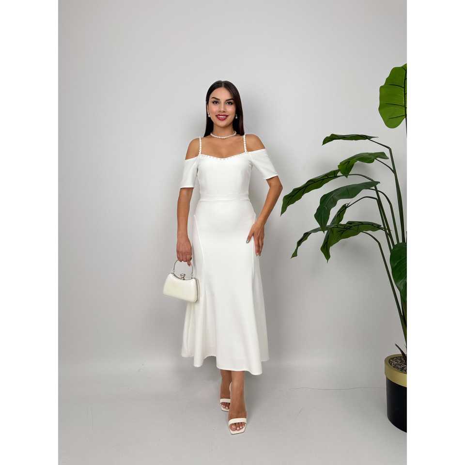 ชุดเดรสผ้าซาตินทรงเข้ารูปประดับมุก 4010 พร้อมดีไซน์สายรัดรูปดอกกุหลาบและเอวทรงธรรมชาติ