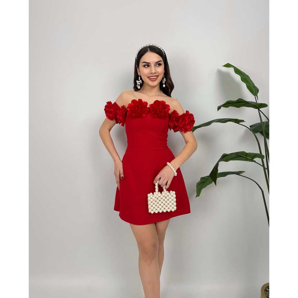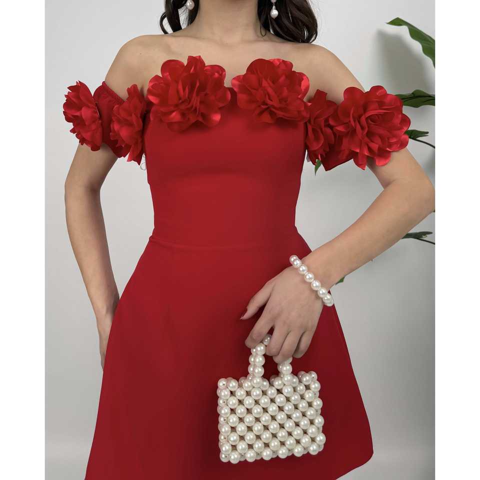 เดรสสั้นผ้าซาตินทรงบอดี้คอน รุ่น 4022 พร้อมดีไซน์ลายกุหลาบแบบไร้สาย