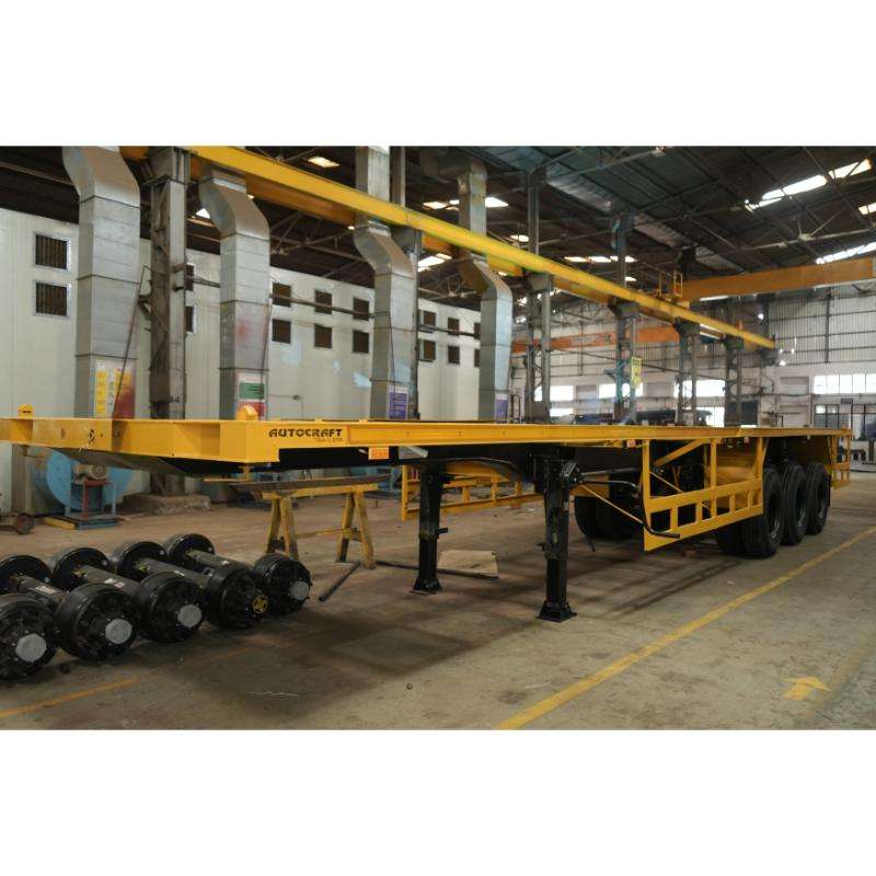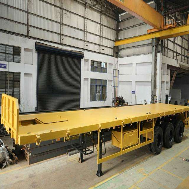 รถพ่วงบรรทุกหนักแบบแบน 40 ฟุต 3 เพลา 54 คอมโบ สำหรับงานพาณิชย์ ขนส่งสินค้า โลจิสติกส์ รับน้ำหนักได้สูง ทนทาน รถพ่วงแบบกำหนดเอง