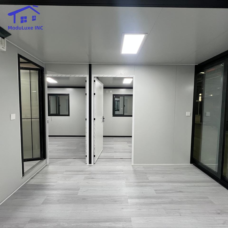 โรงแรมวิลล่าคอนเทนเนอร์แบบขยายได้ขนาด 40 ฟุต สไตล์ร่วมสมัย สำเร็จรูป พร้อมฉนวนกันความร้อน ป้องกันลมแรง 3 ห้องนอน ครัวหรูหรา เคลื่อนย้ายได้