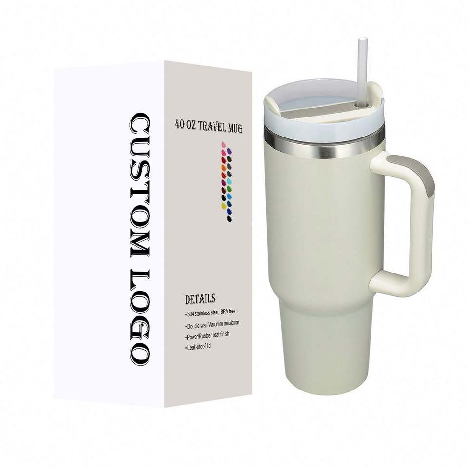 แก้วกาแฟสแตนเลสแบบไล่ระดับสีพร้อมที่จับ40ออนซ์แก้วกาแฟแบบหยาบพิมพ์ลายด้วยแสงระยิบระยับ