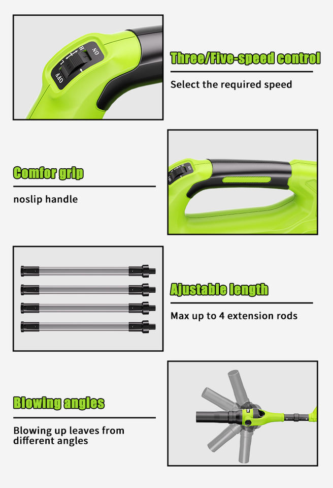 เครื่องเป่าไฟฟ้าไร้สาย21V แบบพกพาสำหรับทำสวนและทำความสะอาด