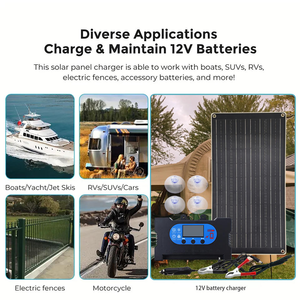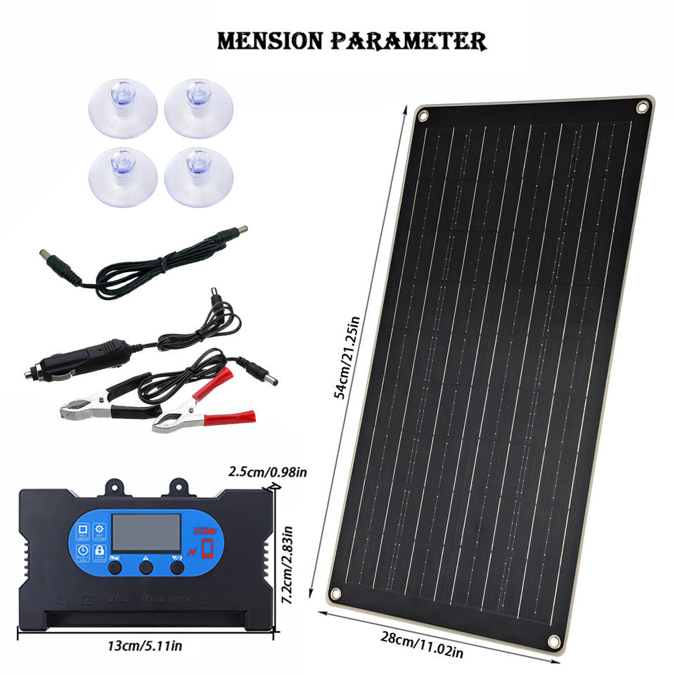 แผงโซลาร์เซลล์พร้อมตัวควบคุมการชาร์จเร็วสีดำ 100A