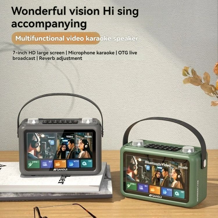 ซับวูฟเฟอร์กำลังสูง 40 วัตต์ SANSUI F58 ลำโพงคาราโอเกะหน้าจอความละเอียดสูง 7 นิ้ว พร้อมจอแสดงเนื้อเพลง เครื่องเล่นวิดีโอเพลง รองรับ TF