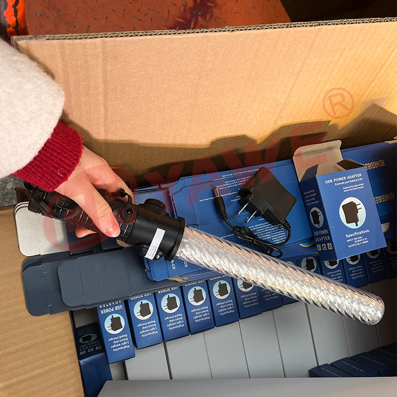 กระบองไฟ LED ขนาด 40 ซม. ทำจาก ABS/PC ใช้พลังงานแบตเตอรี่ สำหรับการรักษาความปลอดภัย การควบคุมการจราจร และการนำเครื่องบิน
