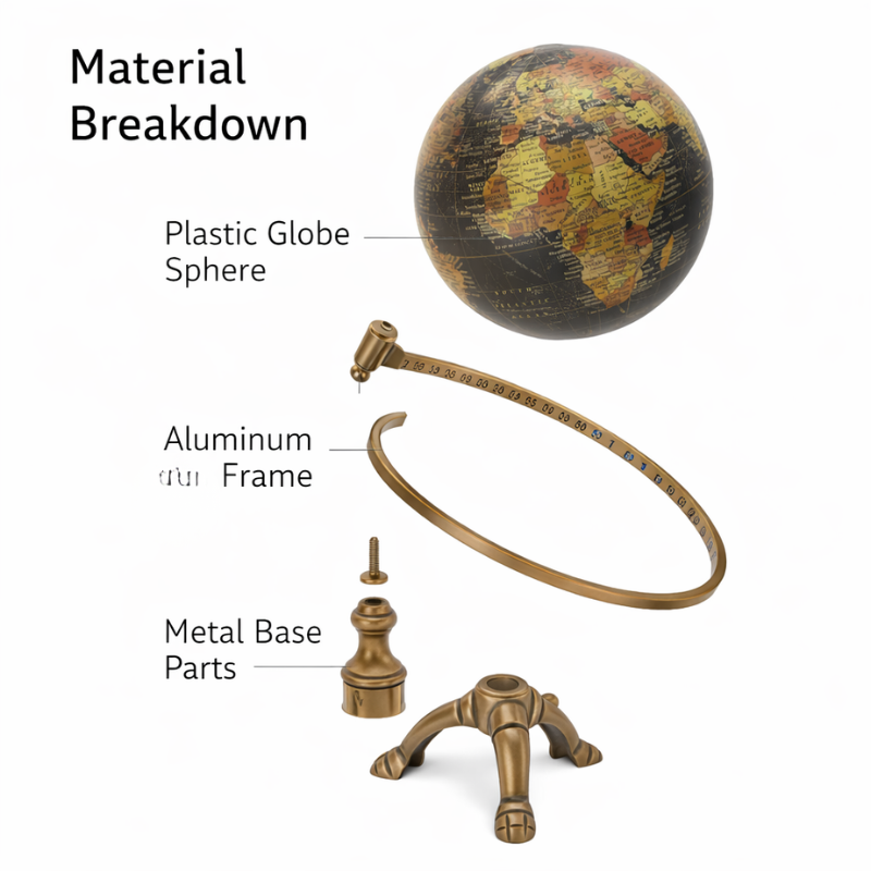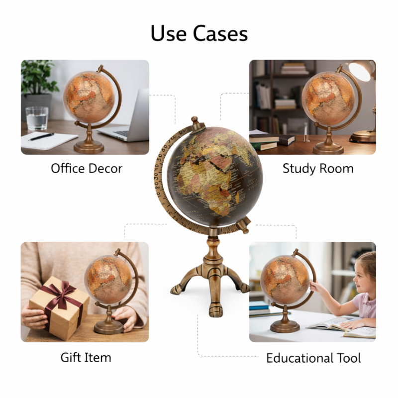 ลูกโลกโลหะขนาดใหญ่ 40 ซม. | แผนที่หลากสีแบบละเอียดพร้อมขาตั้งสีดำที่ทนทาน | ลูกโลกจำลองเพื่อการศึกษาสำหรับห้องเรียนและสำนักงาน