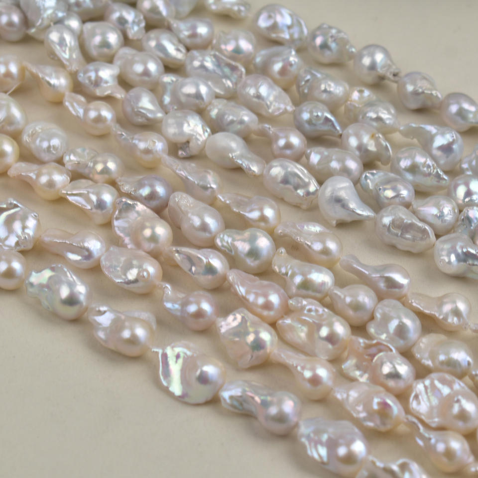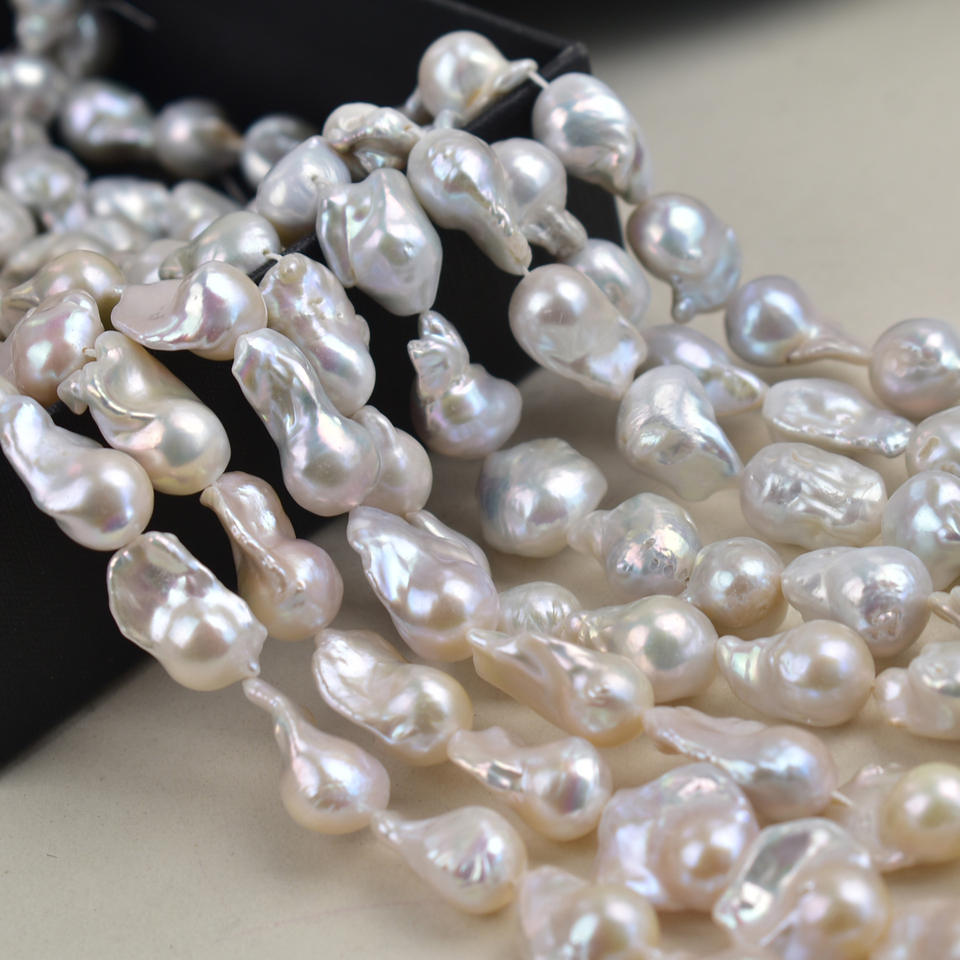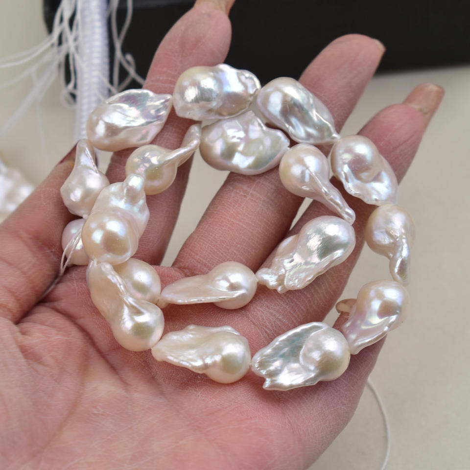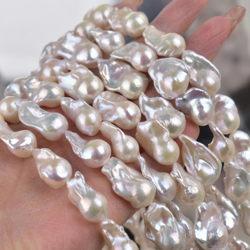 ไข่มุกน้ำจืดธรรมชาติ ยาว 40 ซม. สำหรับงาน DIY รูปทรงหางปลา ขนาดใหญ่ สีสันสดใส ประกายเงางาม รูปทรงไม่สม่ำเสมอ ไข่มุกแบบร้อยเส้น