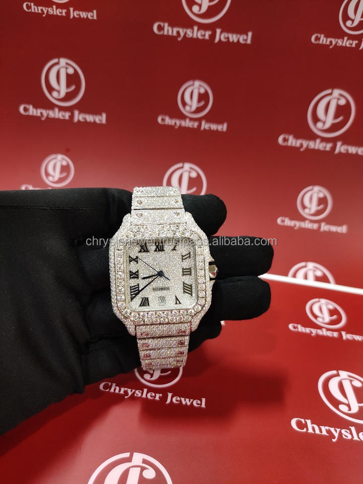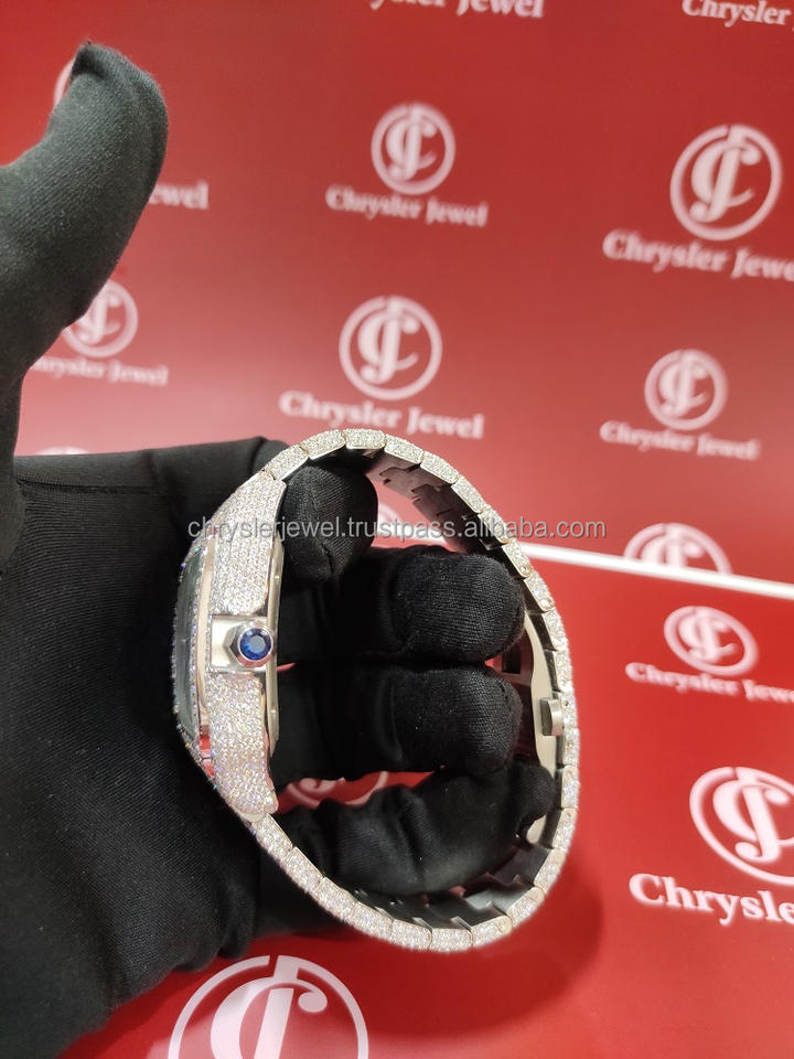 นาฬิกาควอตซ์สแตนเลสสไตล์เพชรเย็นแบบมืออาชีพ40มม. นาฬิกาเครื่องประดับเพชรแบบเต็มสไตล์ฮิปฮอปโมอิสซาไนต์