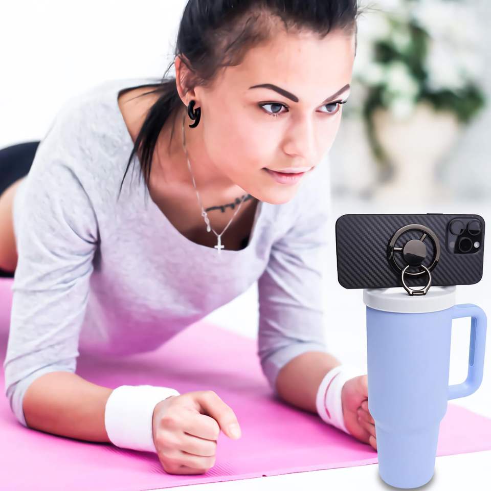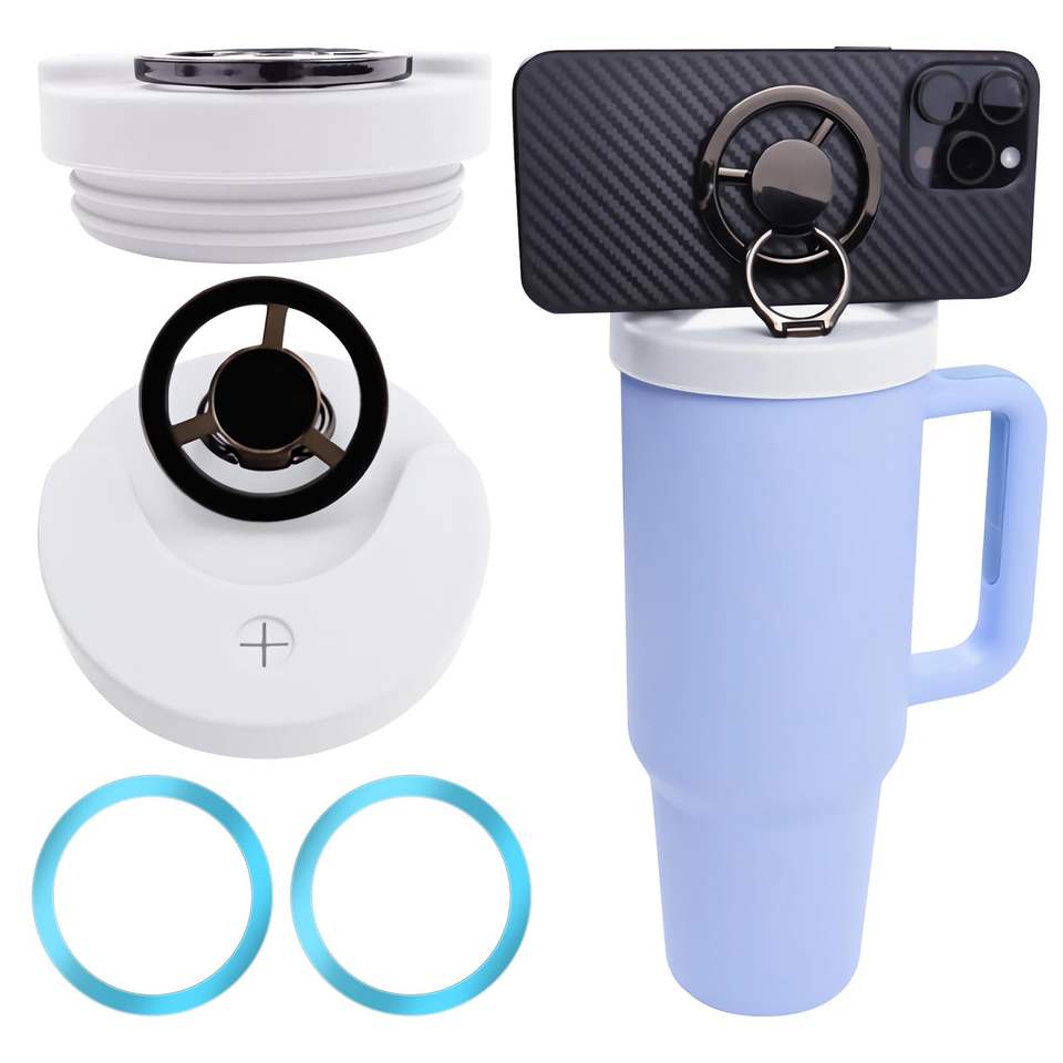 ที่วางโทรศัพท์มือถือแบบหมุนได้ขนาด 40 ออนซ์ พร้อมฝาปิดแก้ว ที่ยึดโทรศัพท์แบบแม่เหล็ก MagSafe ฐานวางโทรศัพท์แบบวงแหวนแม่เหล็ก ผลิตภัณฑ์ภาชนะบนโต๊ะอาหาร