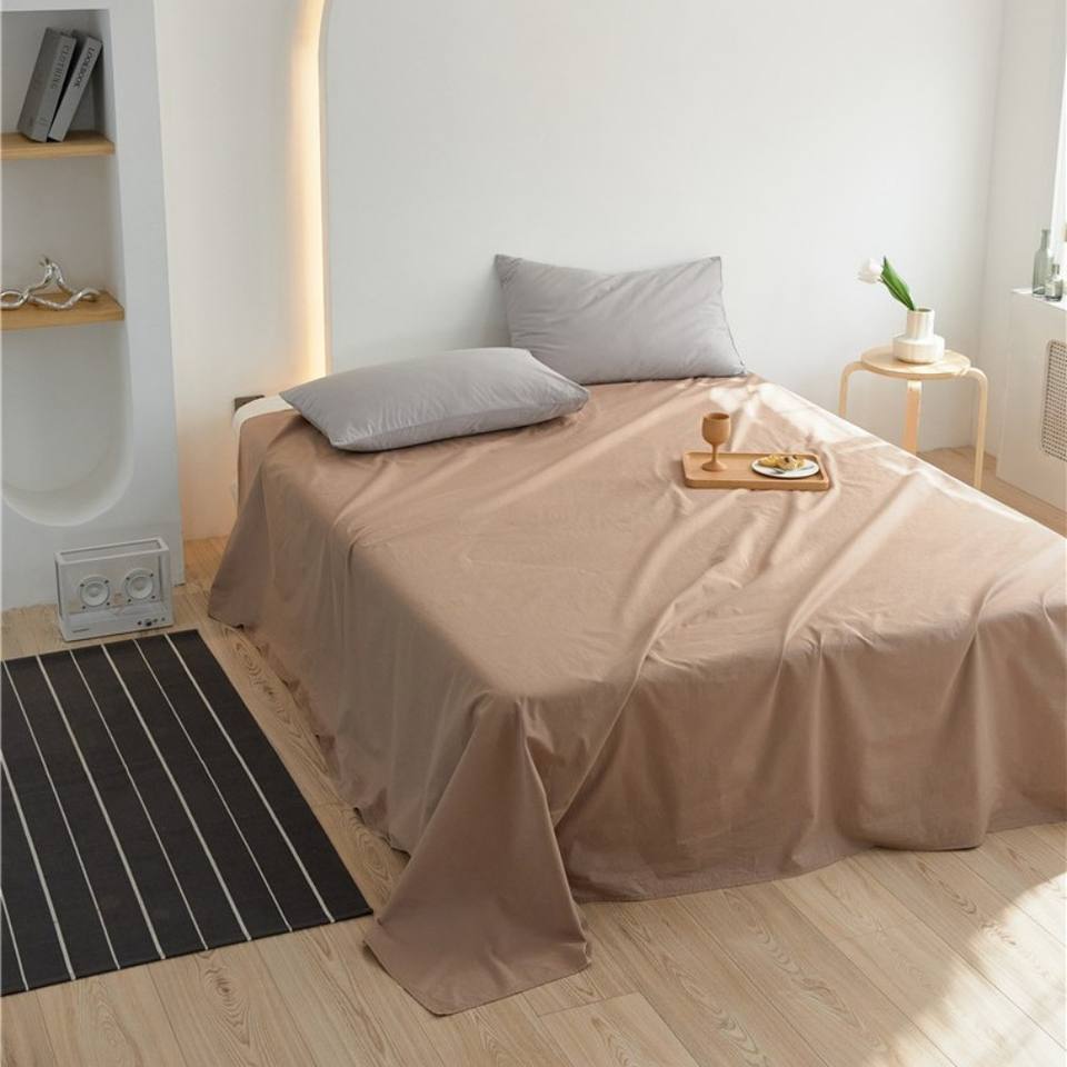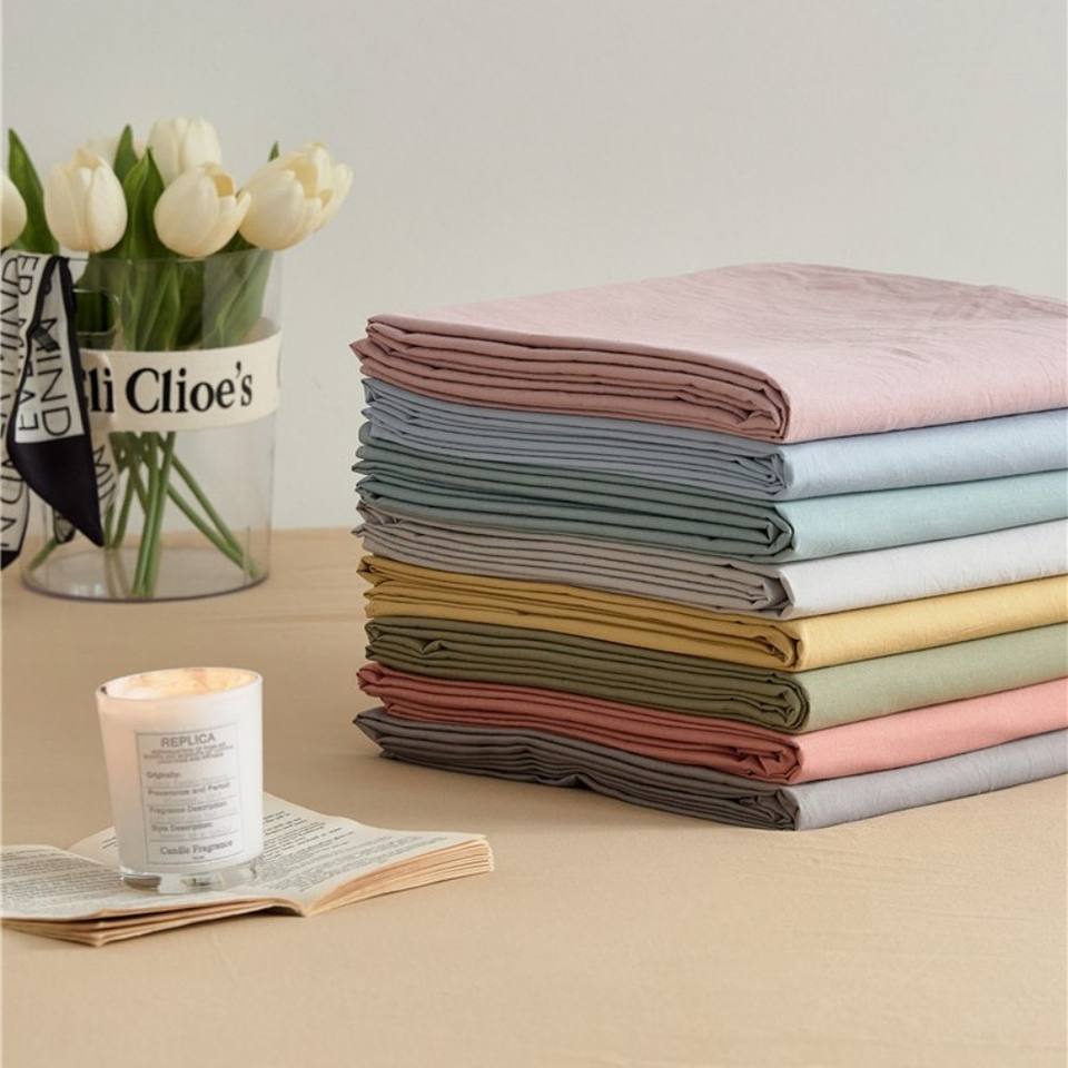 ผ้าฝ้ายแท้100% เรียบง่ายสีเส้นใยยาว40S, ผ้าปูที่นอนเส้นเรียบและเข้ารูป
