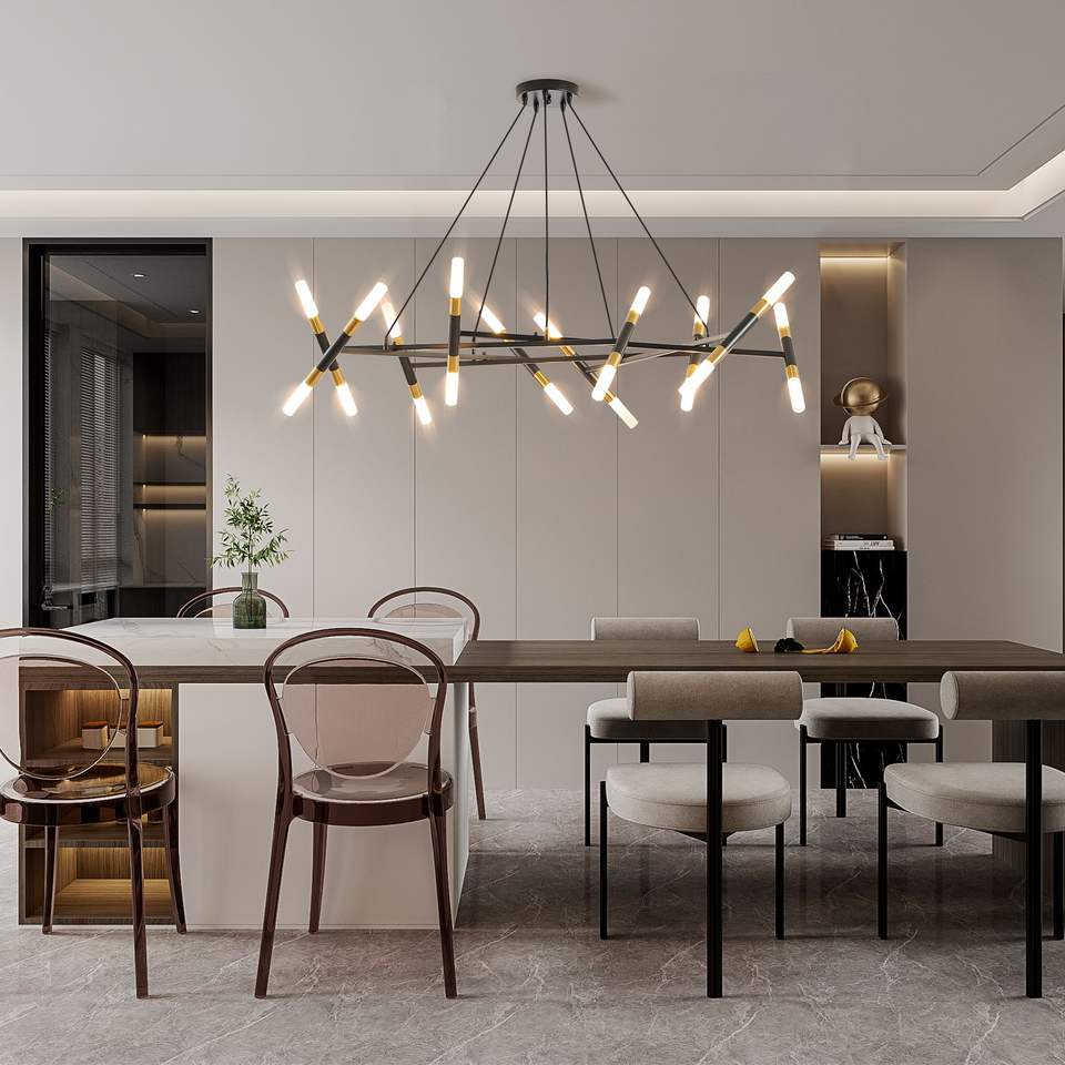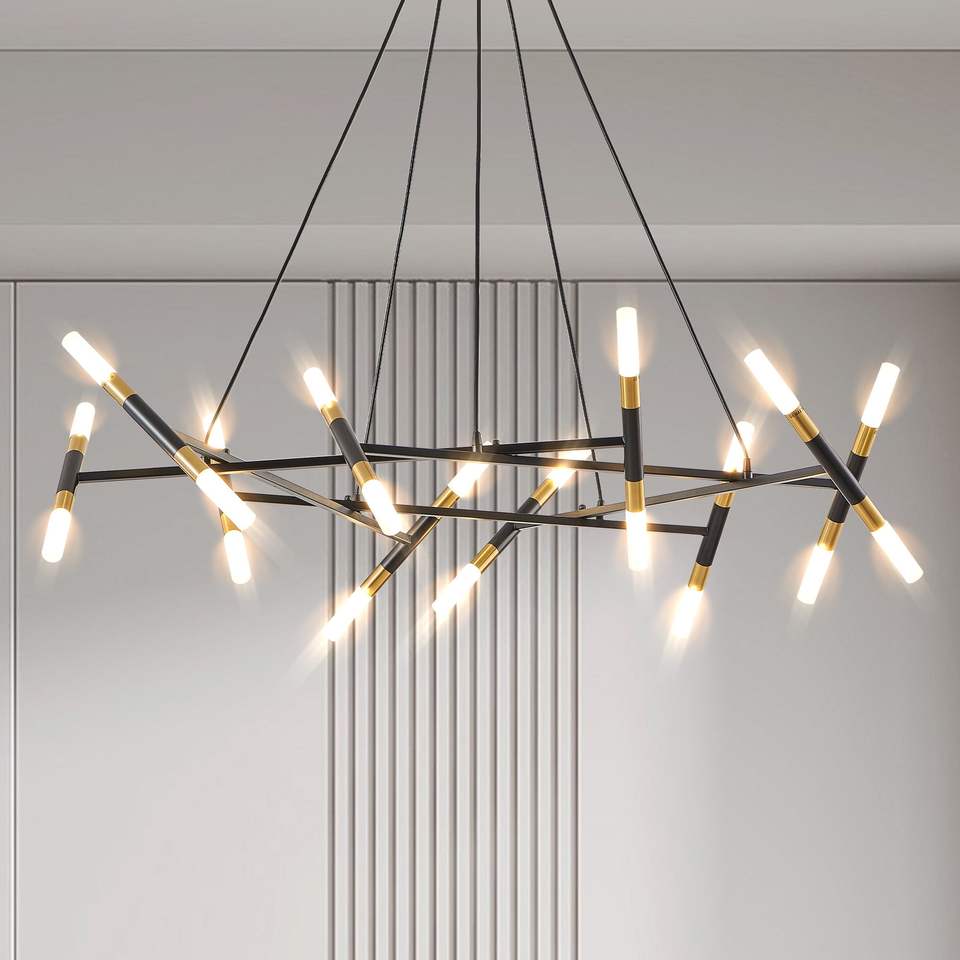 โคมไฟระย้าทันสมัยขนาด 41 นิ้ว ดีไซน์สีทองดำ พร้อมหลอดแก้วฝ้าและสายไฟสีดำ ปรับความสูงได้