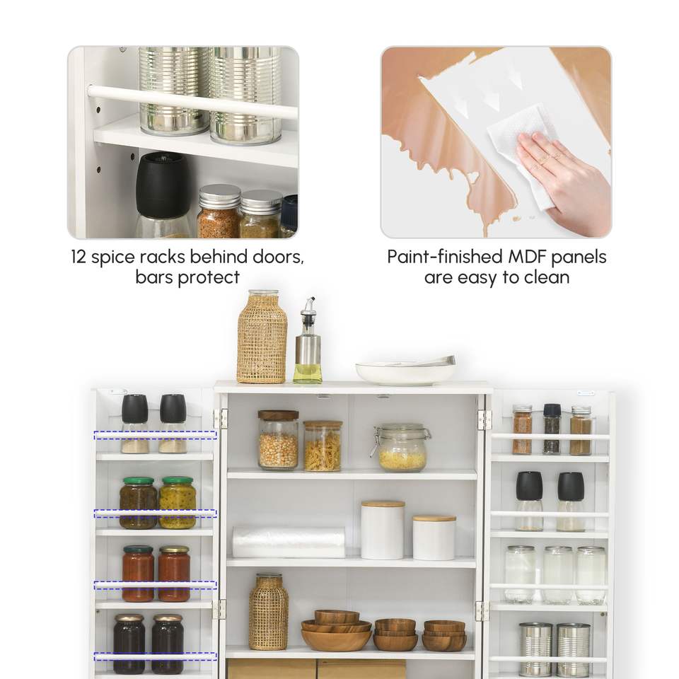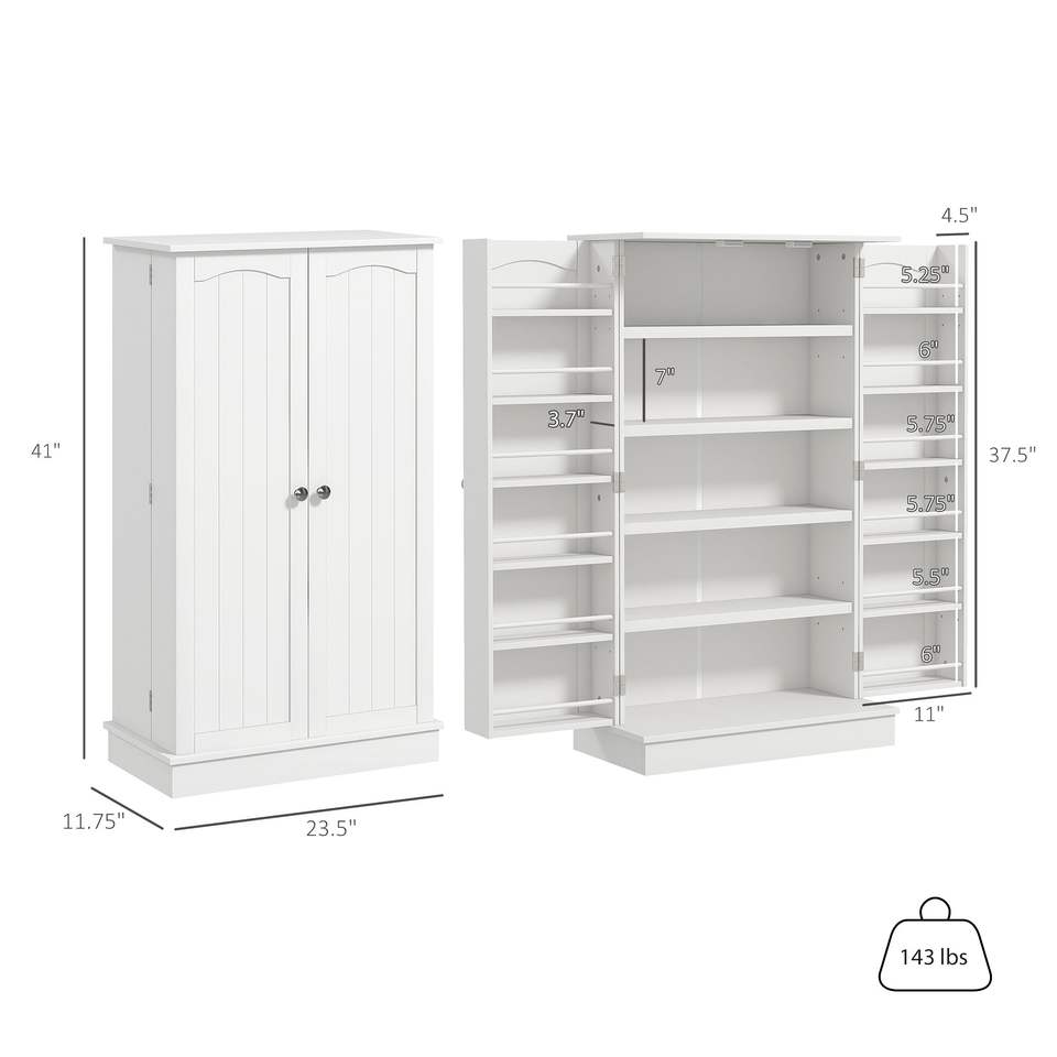 ตู้ไซด์บอร์ดครัวสีขาวขนาด 41 นิ้ว พร้อมชั้นวางของ 5 ชั้น และชั้นวางเครื่องเทศปรับได้ 12 ชั้น แจกันแก้วและคริสตัล ประเภทสินค้า