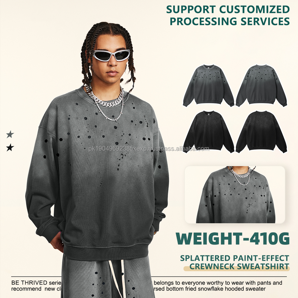 เสื้อกันหนาวสำหรับผู้ชายเสื้อฮู้ดผ้าถักโอเวอร์ไซส์สไตล์วินเทจแฟชั่นสตรีทแวร์สำหรับ410GSM