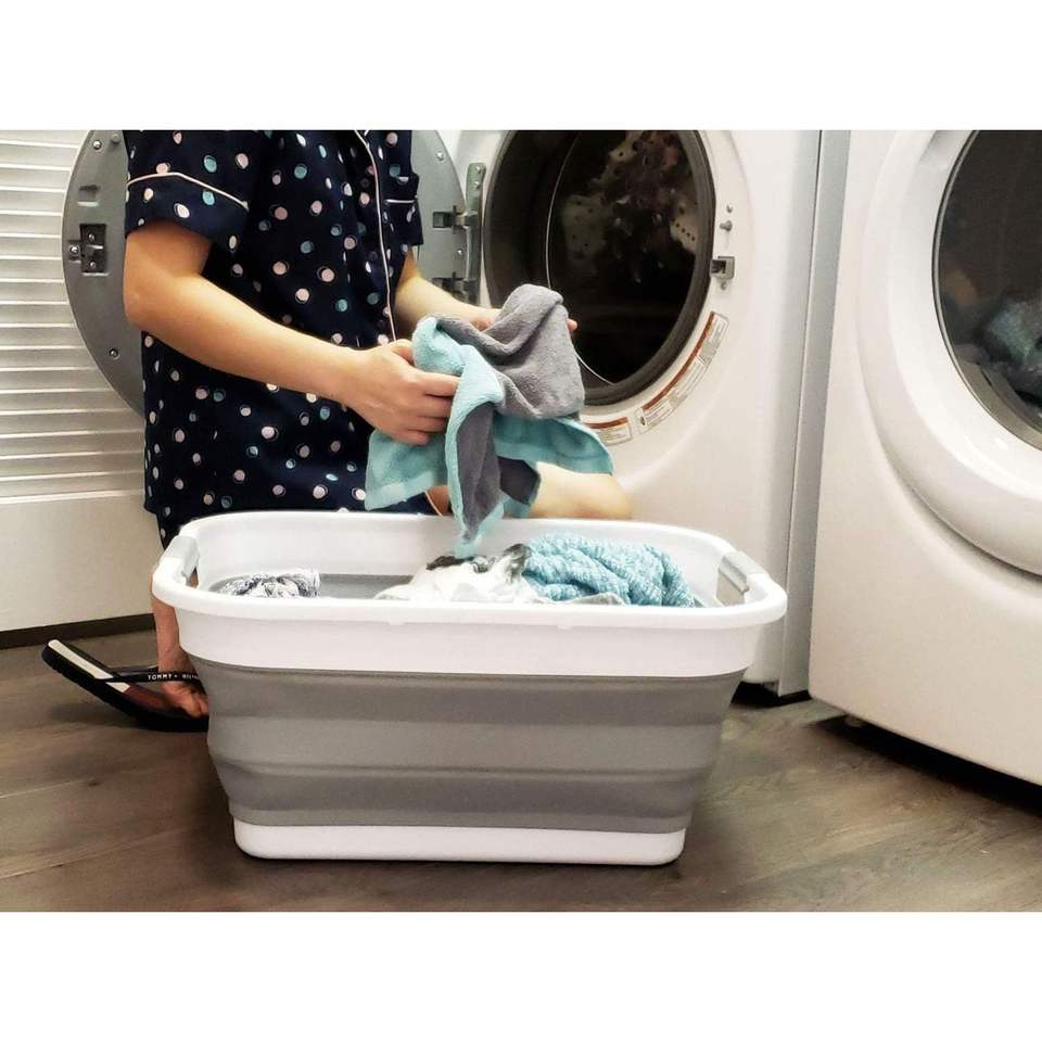 ตะกร้าผ้าพลาสติกพับได้ขนาด 41 ลิตร (10.8 แกลลอน) อ่างซักผ้าแบบพกพา กล่องเก็บของ/ออแกไนเซอร์แบบพับได้ ประหยัดพื้นที่