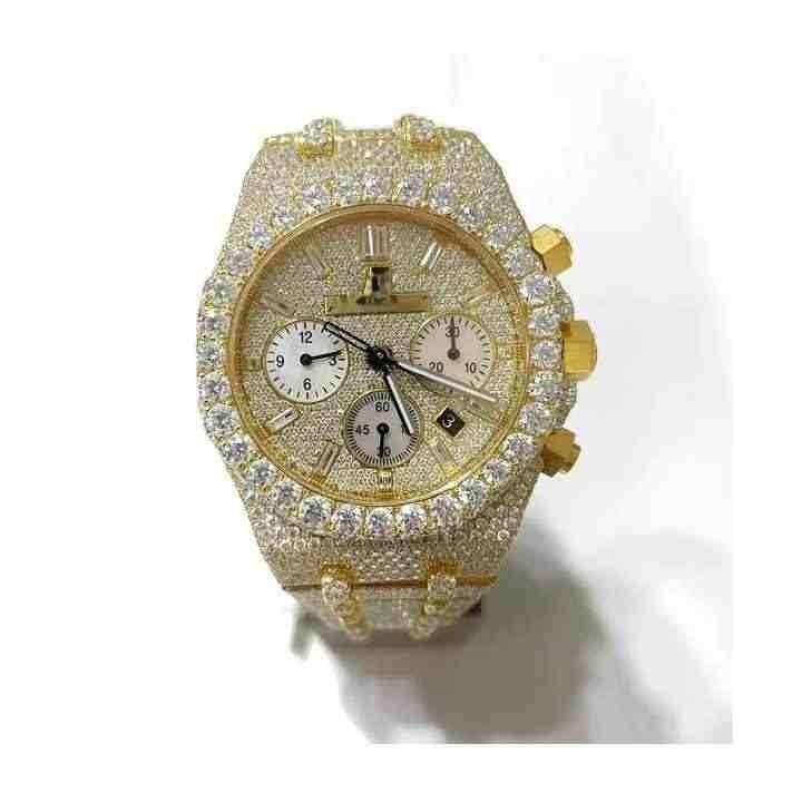 นาฬิกาหรู41มม. แบบตามสั่งนาฬิกาเพชรสำหรับผู้ชายนาฬิกาหน้าปัดสไตล์อาหรับประดับหินสองเรือนสำหรับห้องปฏิบัติการน้ำแข็งเต็มรูปแบบ