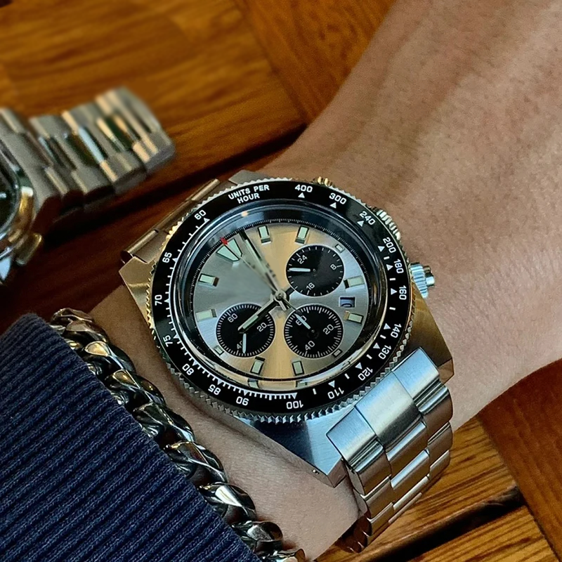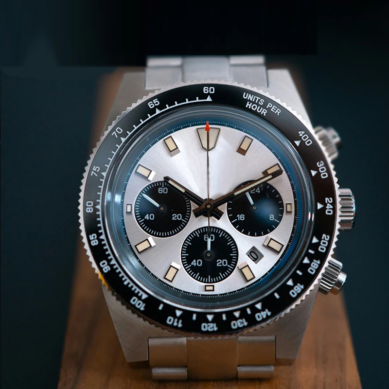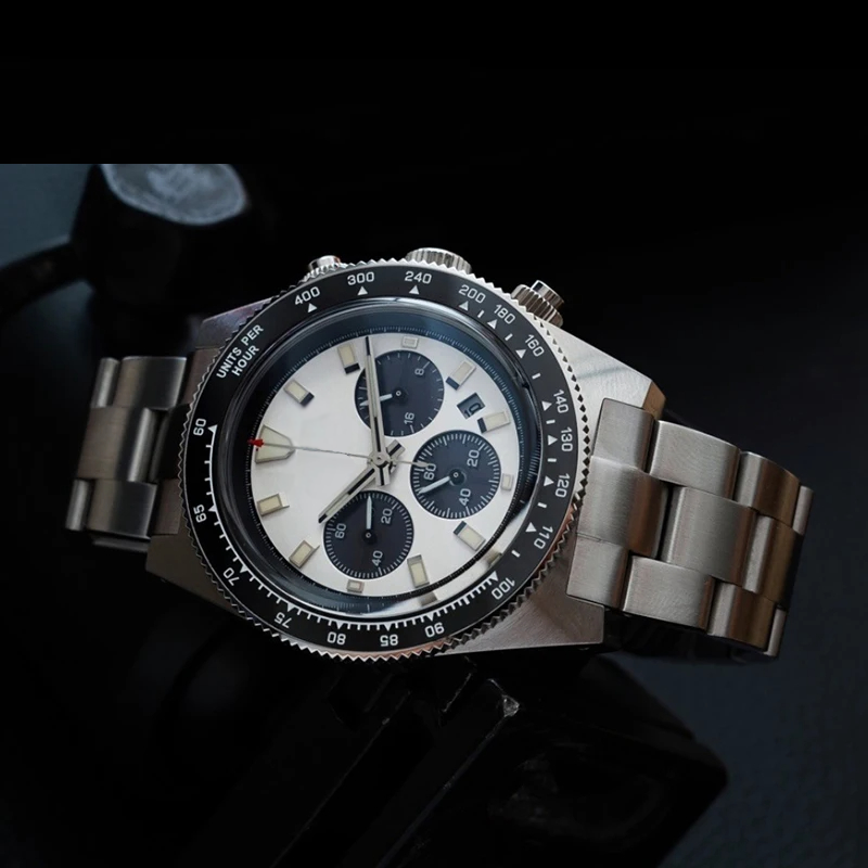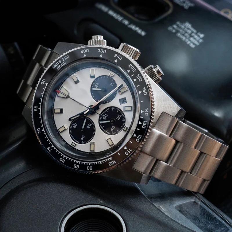 42mm Men's Chronograph Watch VS75 Quartz Movement Waterproof Sapphire Green C3 Luminous Perpetual Calendar Alarm Wristwatch