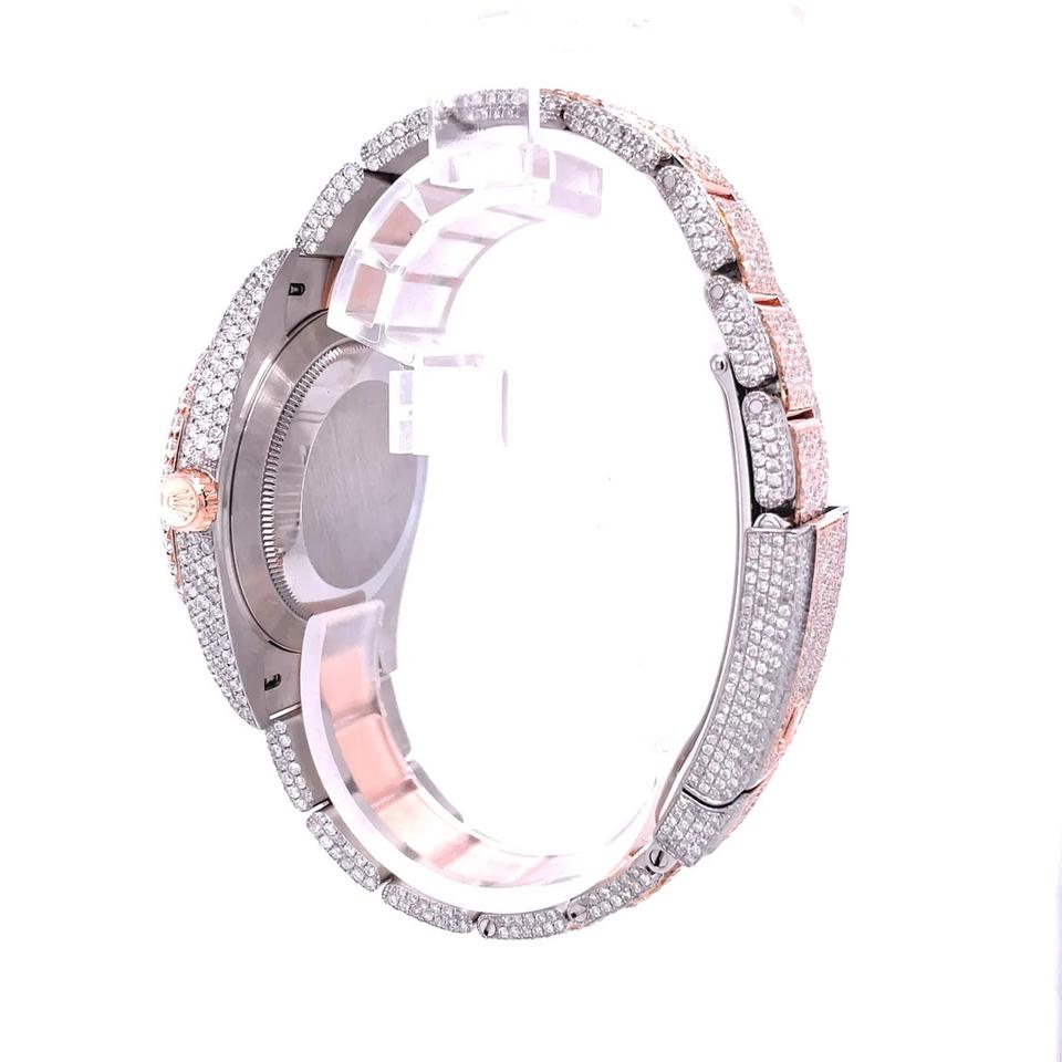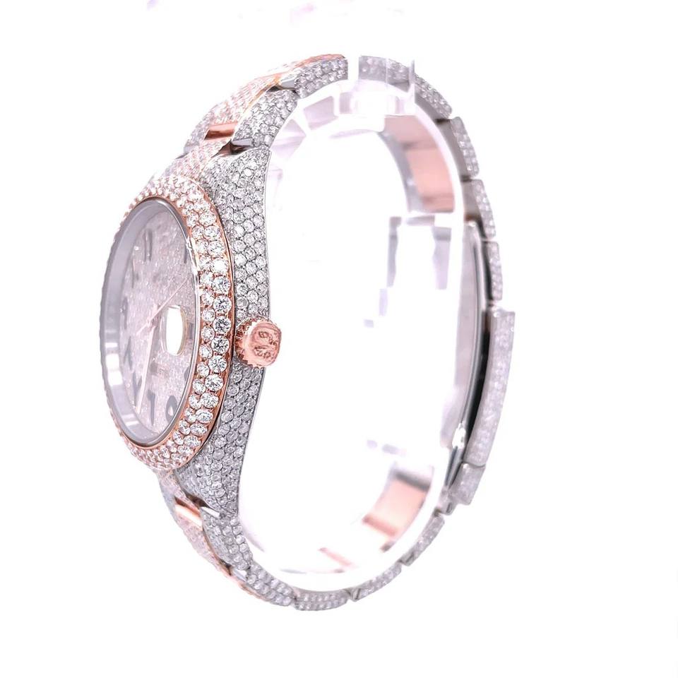 นาฬิกาข้อมือทำมือสำหรับทุกเพศ ขนาด 41 มม. ตัวเรือนสแตนเลสสตีลสีโรสโกลด์ หน้าปัดประดับเพชรโมอิสซาไนต์เต็มเรือน กลไกอัตโนมัติจากญี่ปุ่น