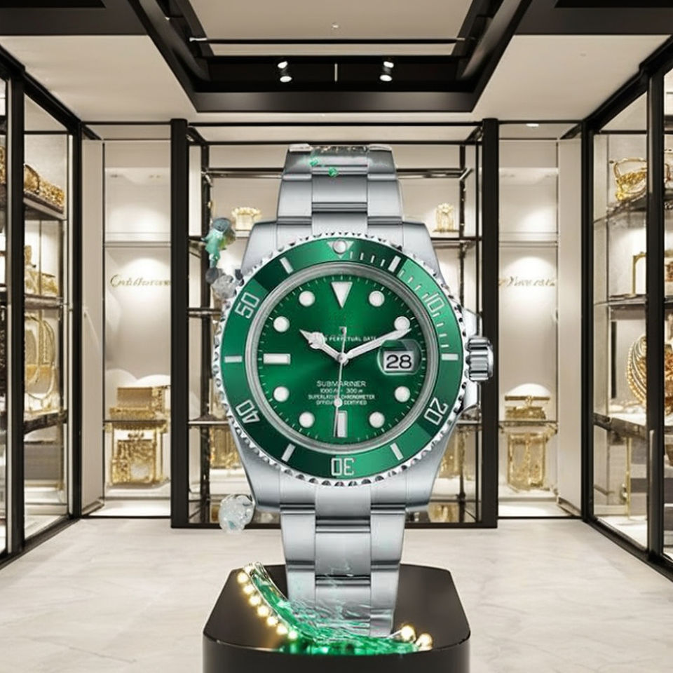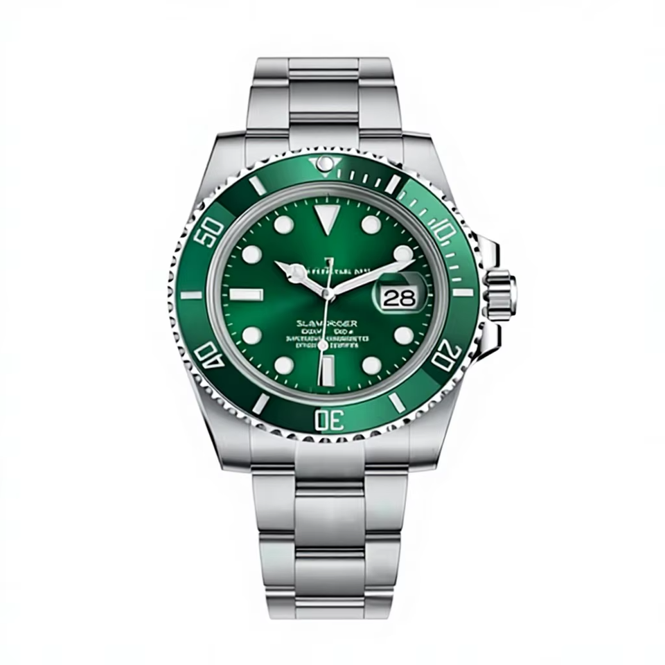 นาฬิกาข้อมือสแตนเลสสตีล 41 มม. ระบบจักรกล ดีไซน์หรูหราสไตล์วินเทจ คุณภาพสูง หน้าปัดและขอบตัวเรือนสีเขียว สายขนาด 22 มม. พร้อมเข็มเรืองแสงและตัวเลขเรขาคณิต