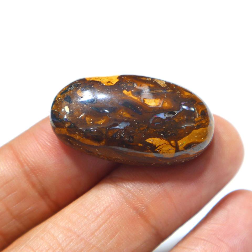 หินโอปอลโบลเดอร์โอปอลจากออสเตรเลียขนาด42.00กะรัตอัญมณีหลากไฟทรงหลังเบี้ยขนาด32X18X8มม. โอปอลโบลเดอร์สำหรับทำเครื่องประดับอัญมณี