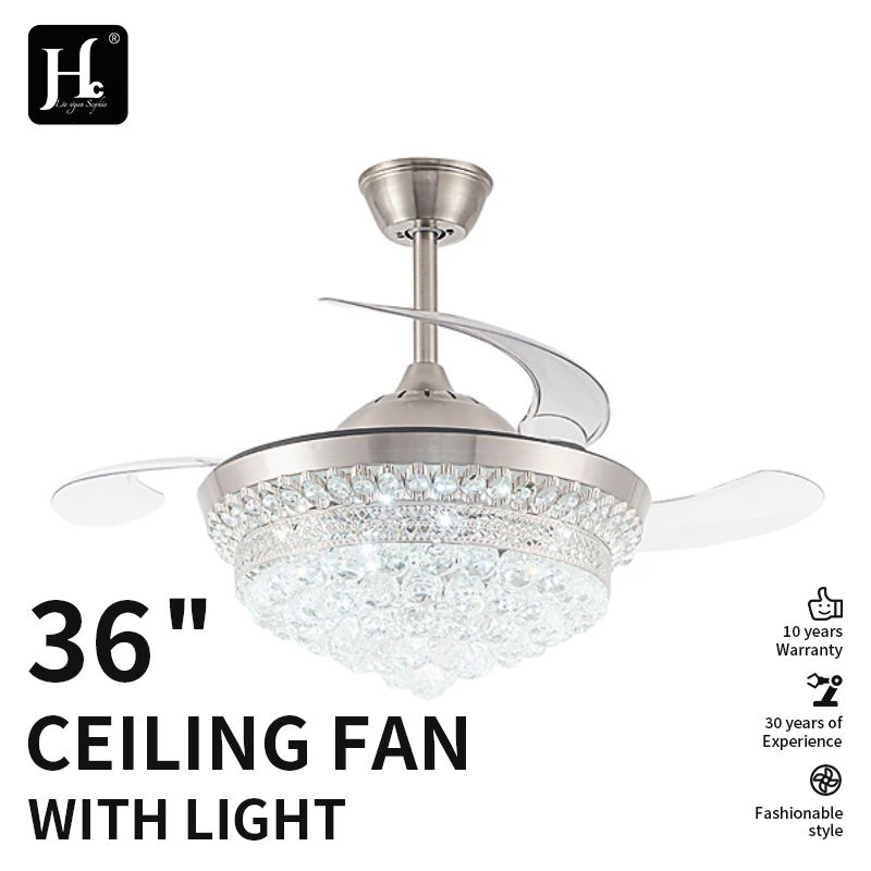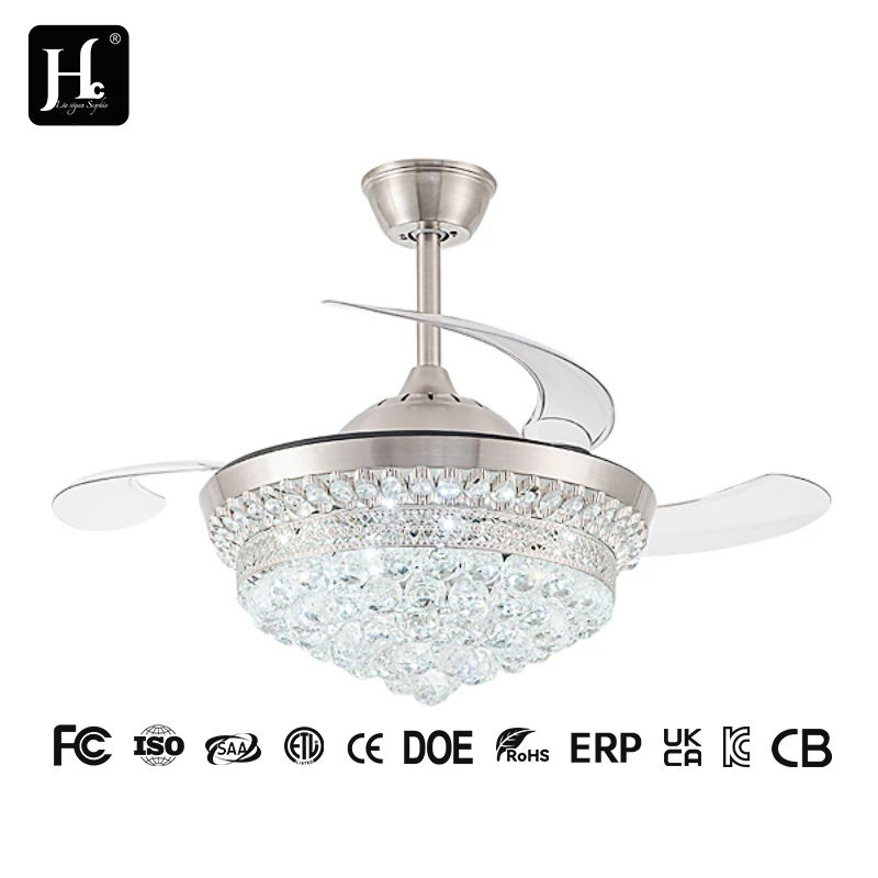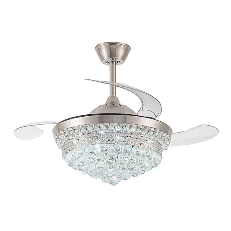 พัดลมเพดานดีไซน์ทันสมัยขนาด 42 นิ้ว พร้อมมอเตอร์ LED DC 6 ระดับความเร็ว โคมไฟคริสตัลหรูหรา พร้อมรีโมทคอนโทรล