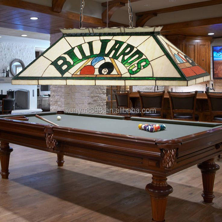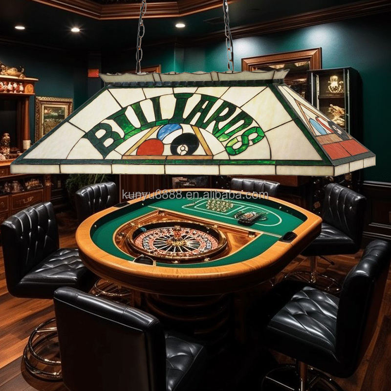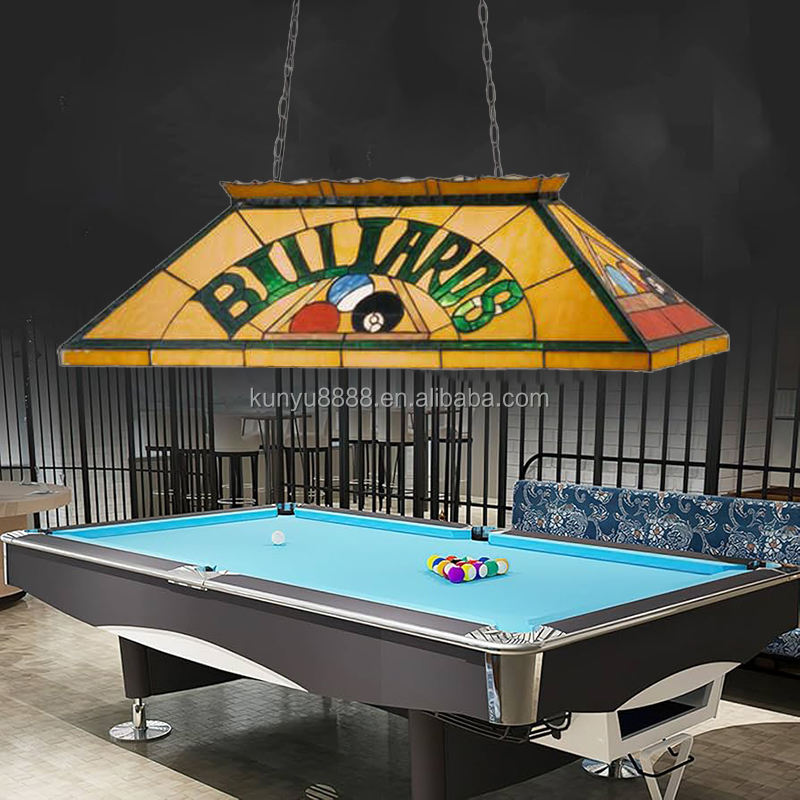 โคมไฟระย้า LED สไตล์ทิฟฟานี่ขนาด 42 นิ้ว สำหรับโต๊ะพูล กระจกสีสั่งทำพิเศษ สำหรับห้องบิลเลียด ห้องสนุกเกอร์ ไฟบาร์
