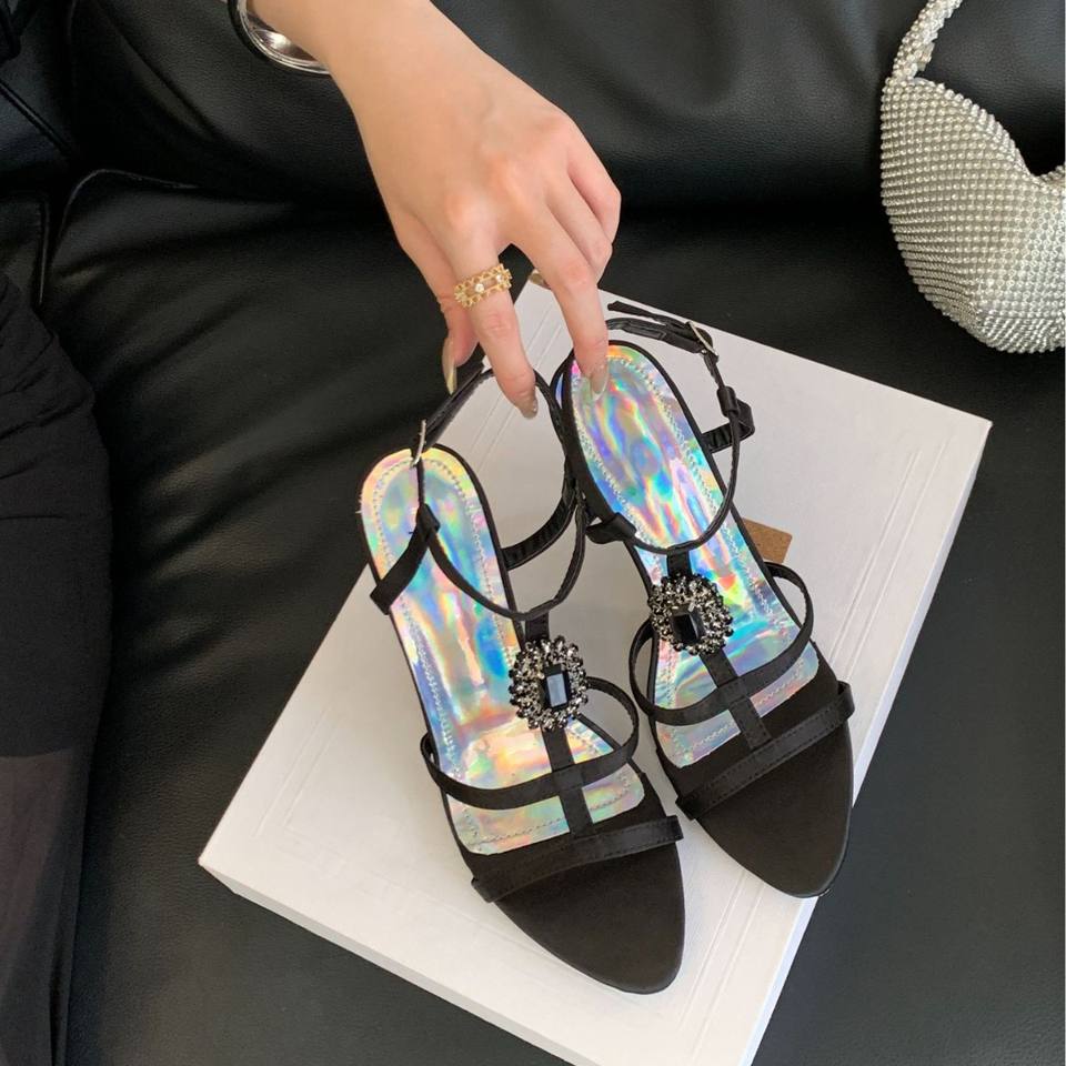 รองเท้าผู้หญิงไซส์ 42 รุ่นใหม่ประจำฤดูร้อนปี 2026 สไตล์วินเทจประดับอัญมณีและคริสตัล สวยหรู ทันสมัย ระดับไฮเอนด์ แบบเปิดนิ้วเท้า